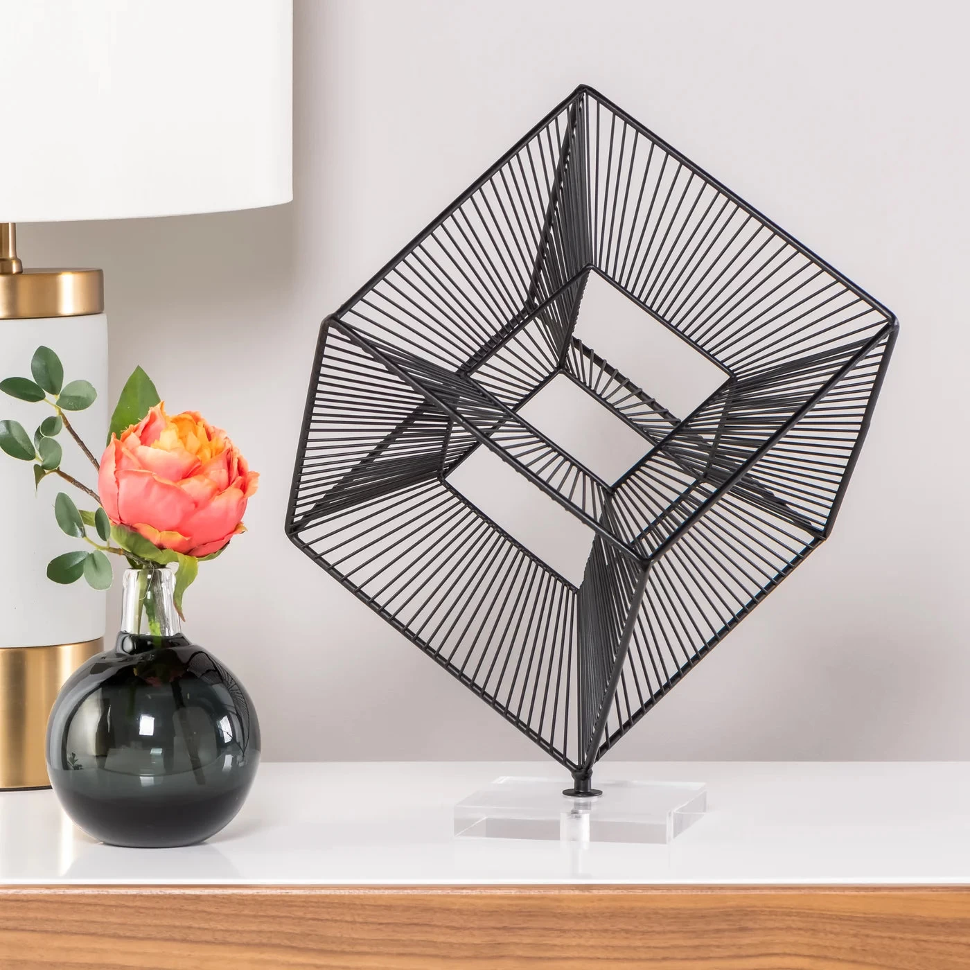 This 3D Radiant Cube 16″ Decor Sculpture brings a sensational edge to any space with its modern, geometric form. Its gleaming black metal finish is set off by the sleek clear acrylic base, creating an eye-catching conversation piece that is sure to impress. Make a statement with this truly luxurious sculpture.