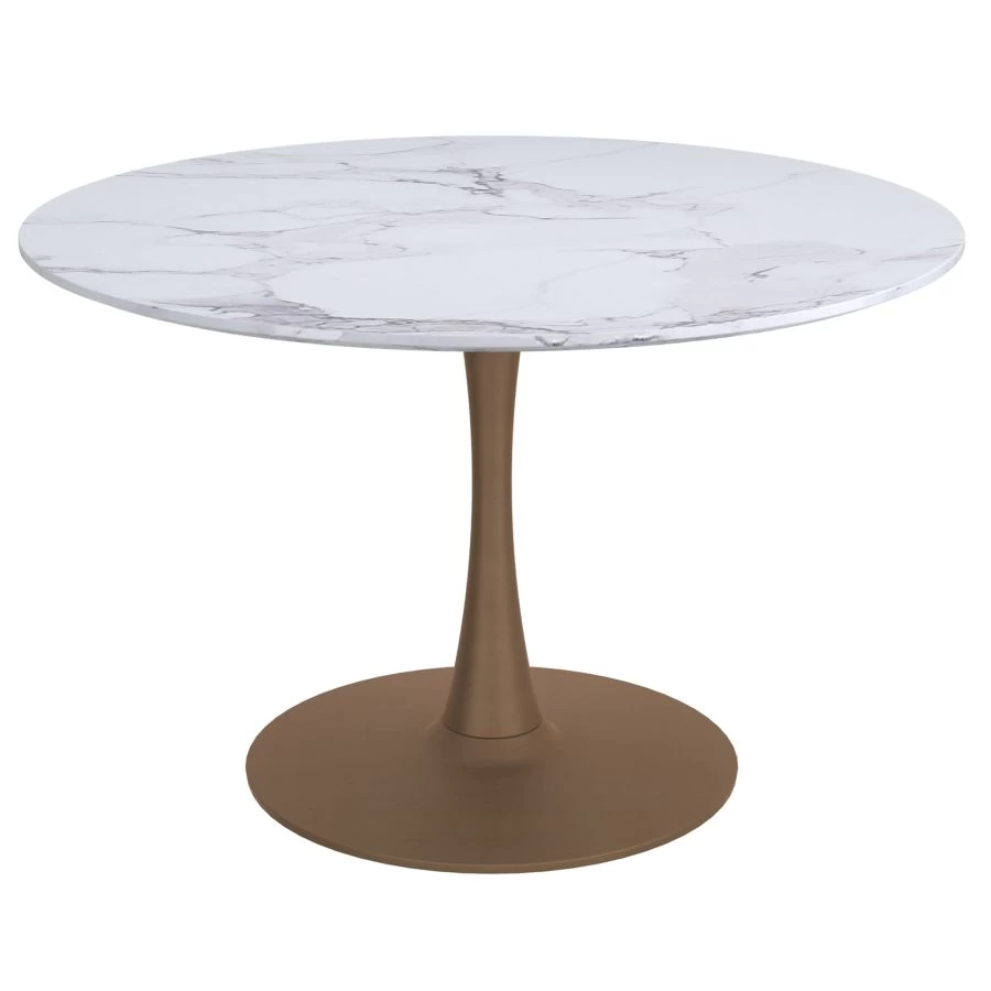 Introducing our new Acer 48″ Round Dining Table in White Faux Marble with Matte Aged Gold Base. This sturdy pedestal dining table will quickly become the focal point of your dining area. The base’s curves add a mid-century feel, while the faux marble MDF top adds a modern touch. Fits four chairs comfortably, and can sit up to 6 guests, making it ideal for formal or casual dining.