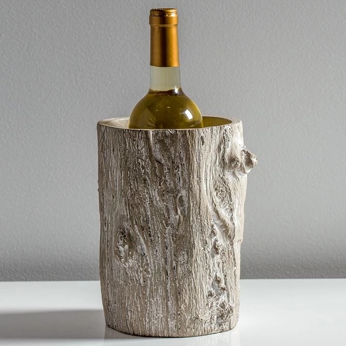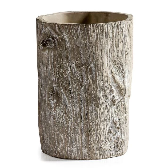 Unique cement drop pots with a bark texture that are perfect for prepotted herbs and flowers or to be used as a chiller.