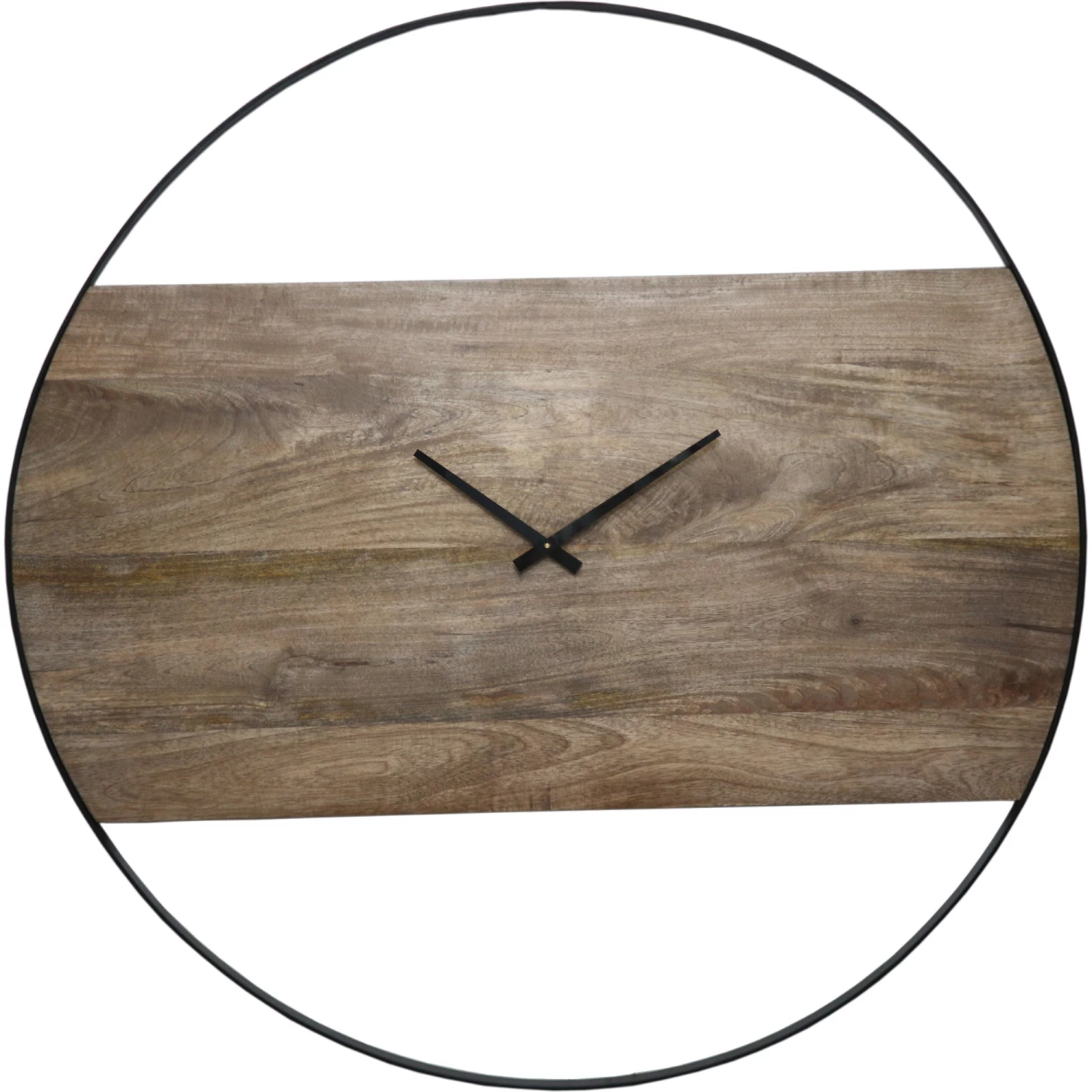 The Darrow Wall Clock features a contemporary style, composed of mango wood with a natural wood finish.Â