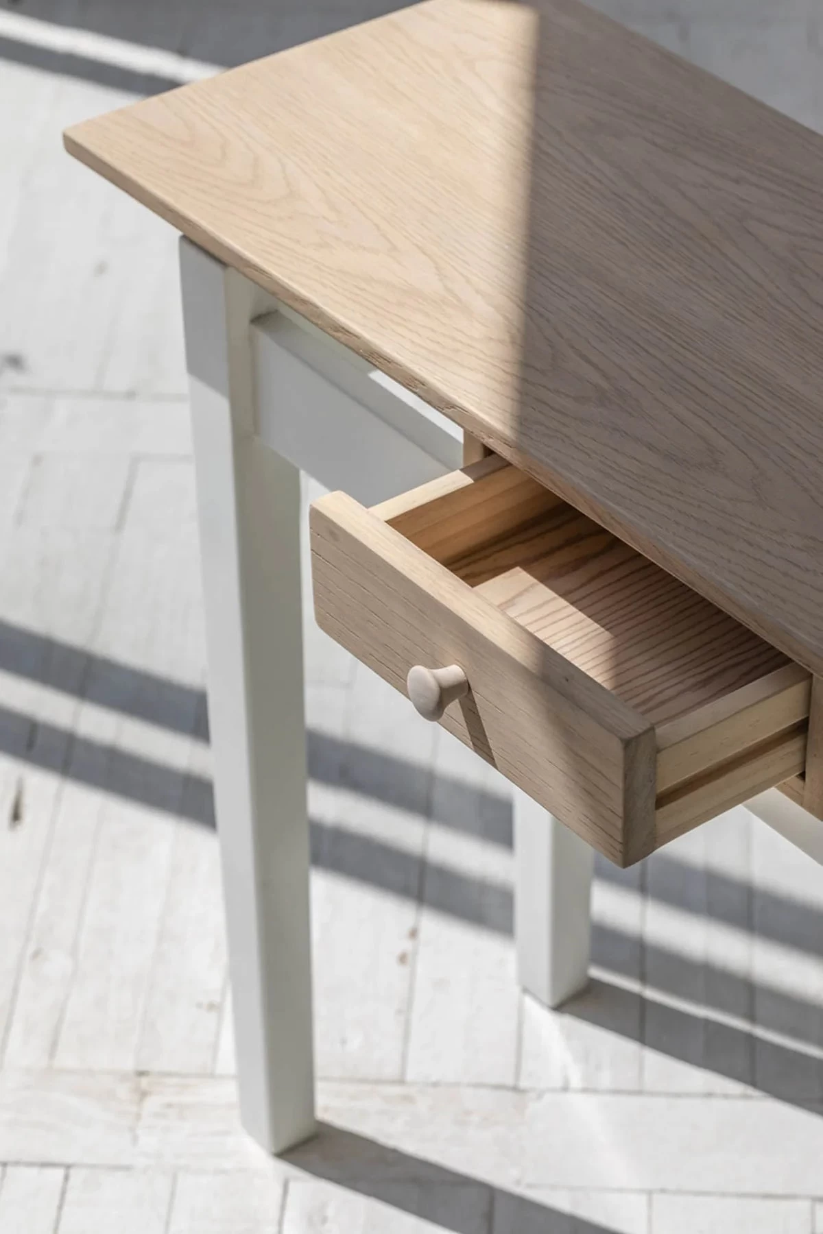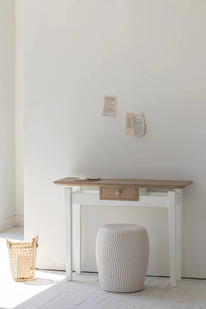 Introducing the Andrea Console, from our prestigious Renaissance Collection. Crafted with solid pine and featuring a unique white and natural wood finish, this console offers both style and practicality with its pull out drawer. Enjoy sophistication and organization with this timeless piece.