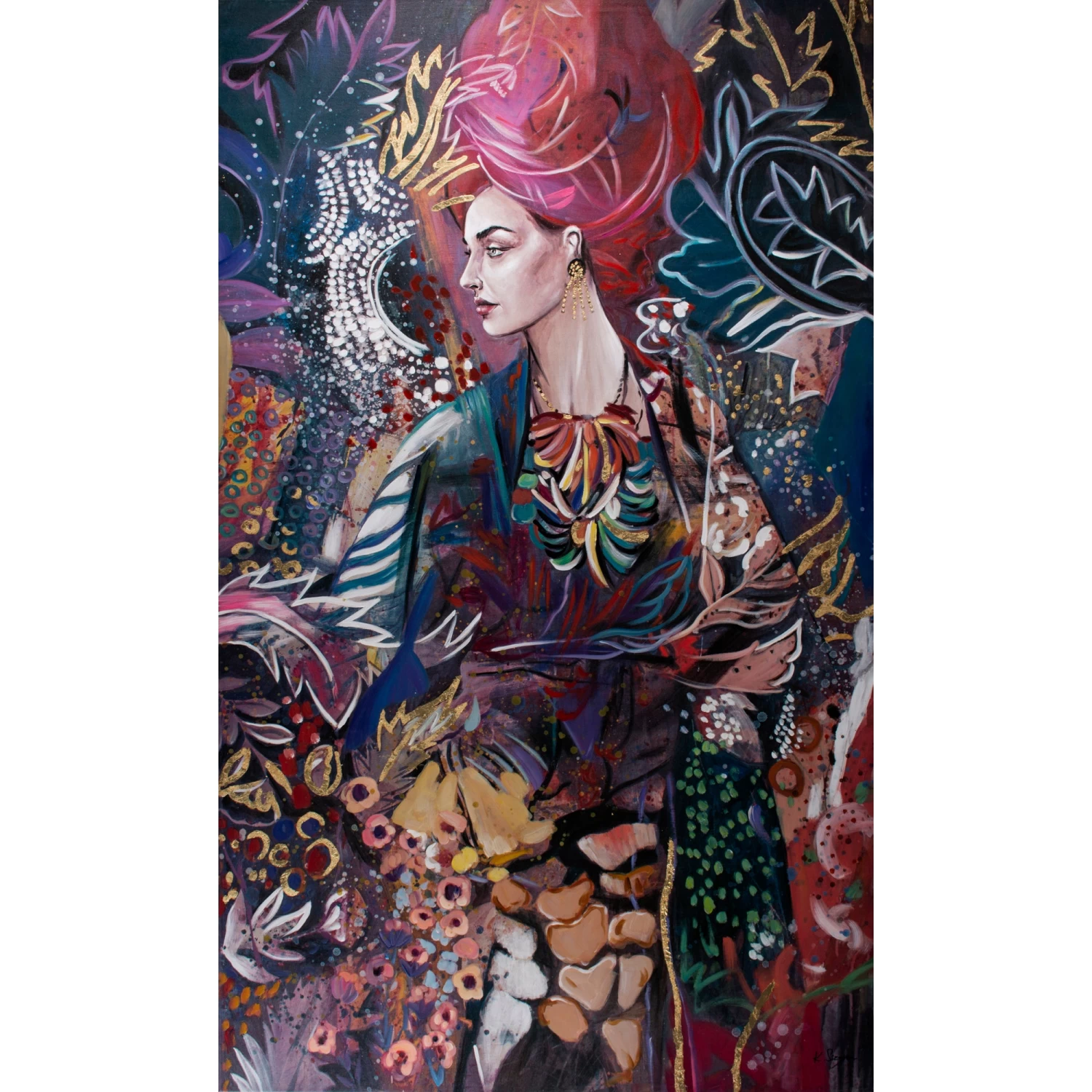 The Angelina Canvas Painting is hand painted on canvas.Â