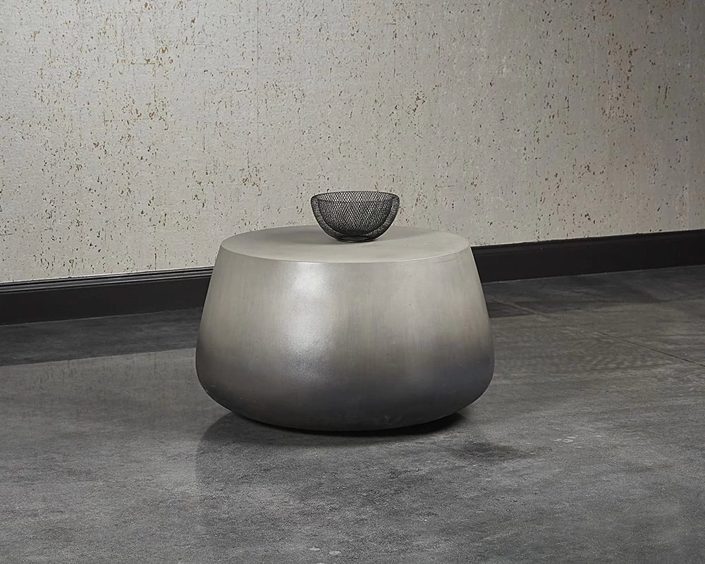 A beautiful concrete coffee table that will add boldness to any space. The drum-shaped design features a dramatic painted black ombre finish. A versatile and functional piece suitable for indoor and covered outdoor spaces.