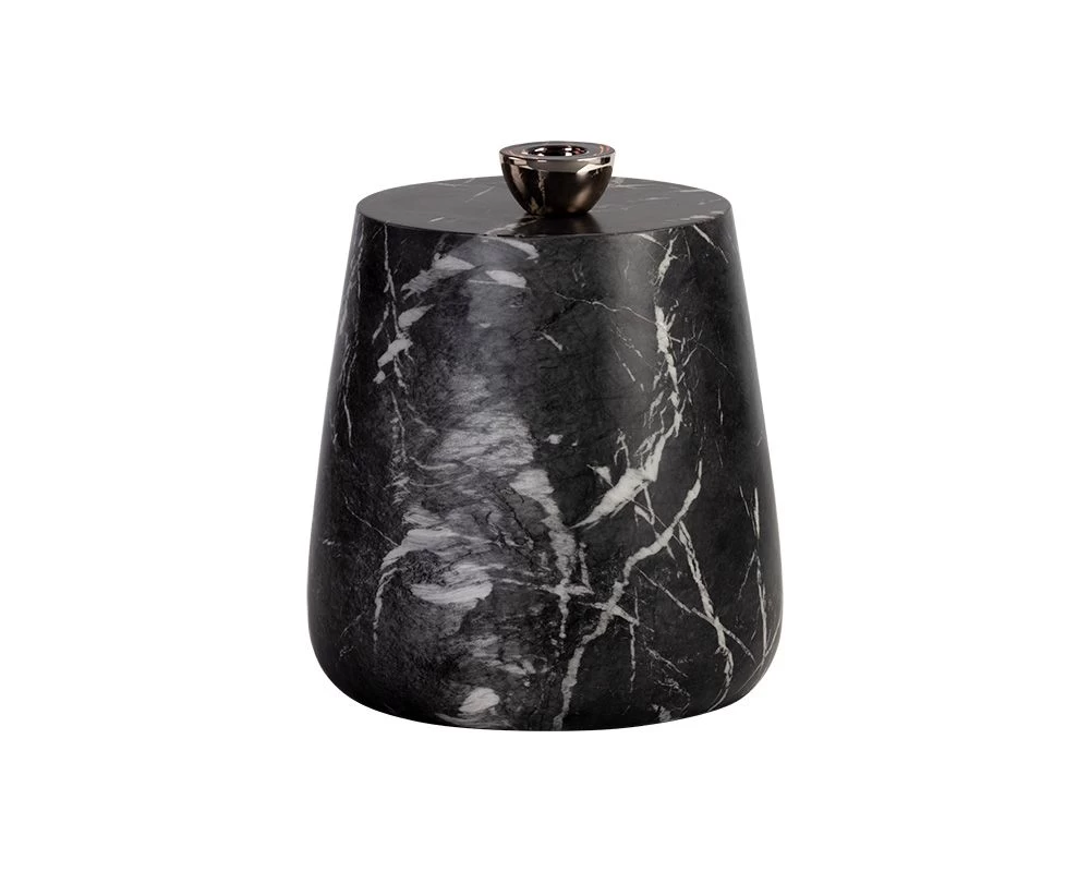 A beautiful concrete side table stocked in both black and white marble look finish. A versatile and functional piece suitable for indoor and covered outdoor spaces.