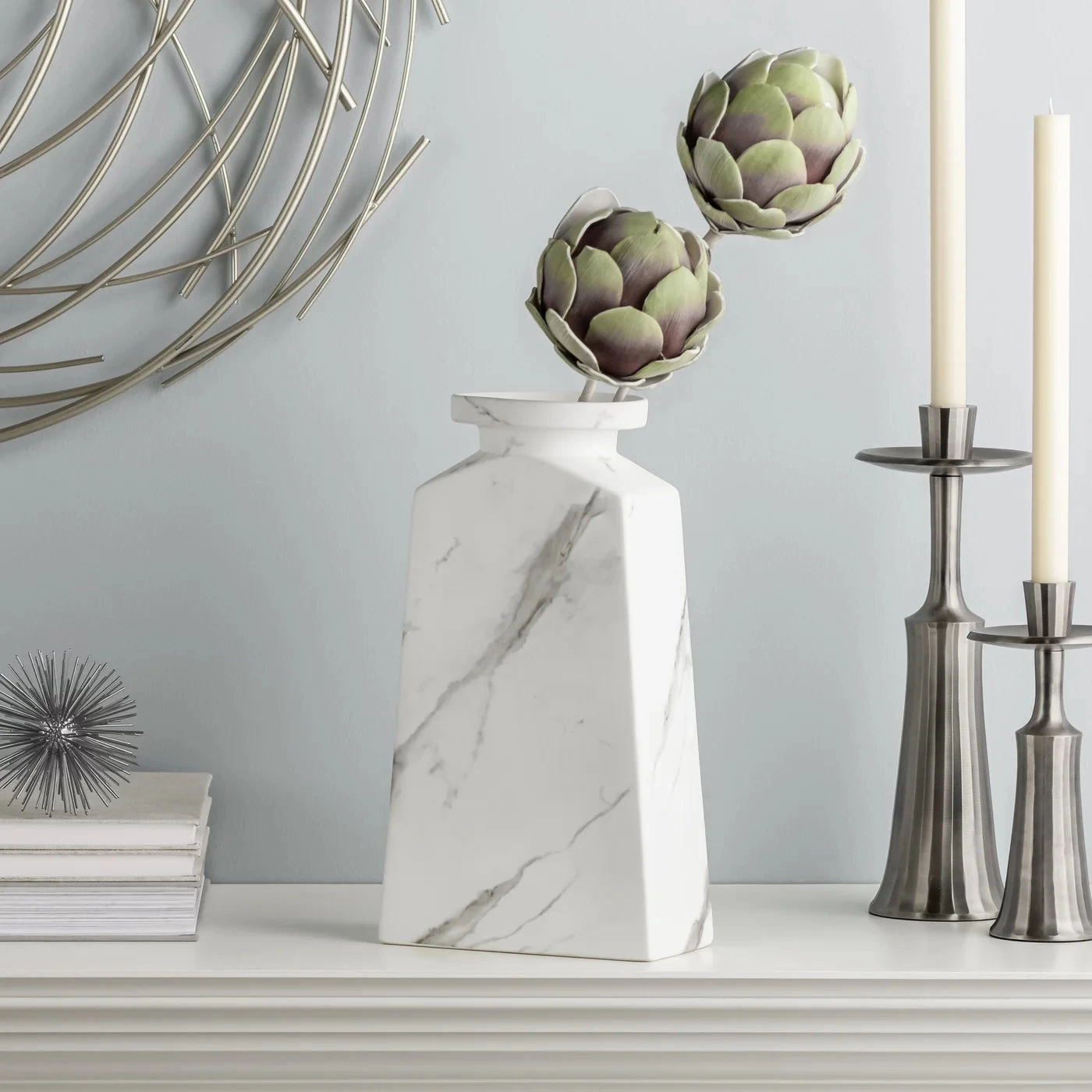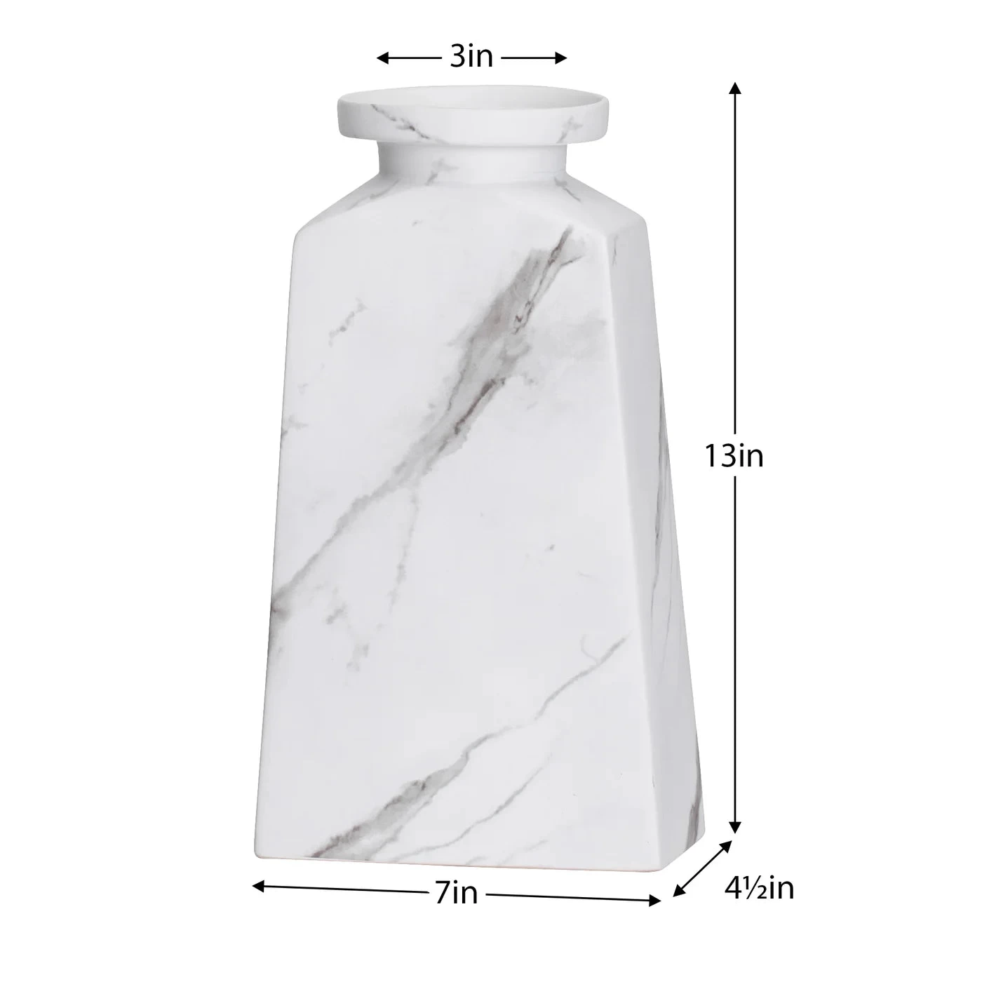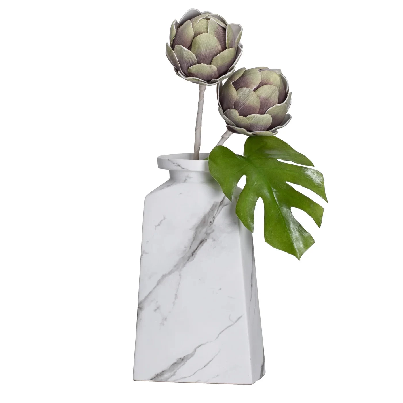 Bring an air of sophistication to your living space with the Aris Marble Ceramic 13h” Tapered Urn Vase. Crafted from glazed ceramic with a unique marble pattern, this luxury vase combines classic elegance with modern style. Its tapered shape is perfect for floral arrangements or as a standalone statement piece – adding drama to any interior.