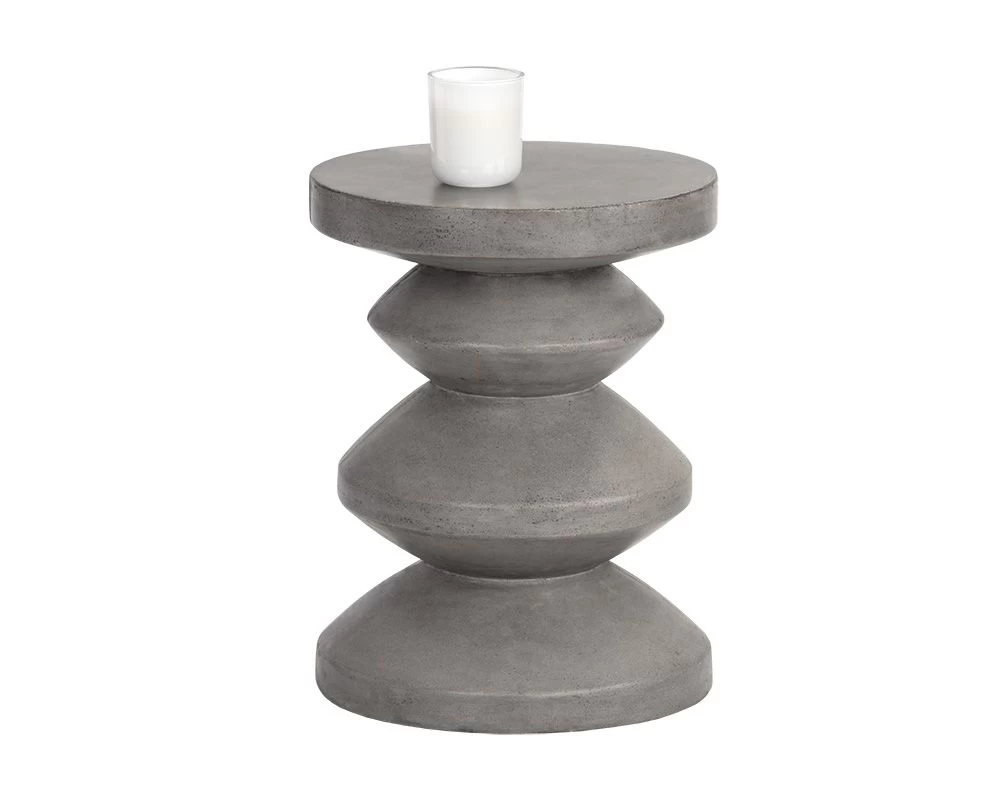 This sculpted concrete end table will add visual interest and functionality to various spaces. Crafted from a natural concrete mix, each piece will look different, with variations of grey hues that will enhance over time. Suitable for indoor and covered outdoor spaces.