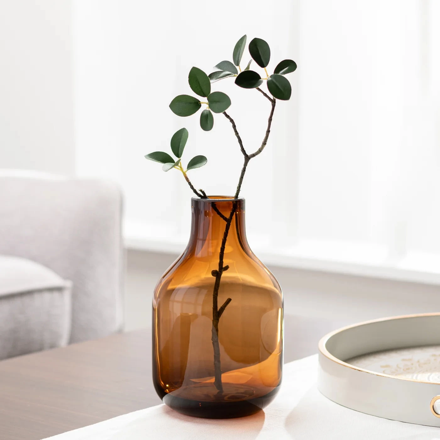 The Beau Mini Bottle Vase boasting a Mid-Century Modern inspired design is an ideal accent to any coffee table or bedroom nightstand. It’s captivating brown hue and slim profile offer a sophisticated, exclusive boost that invites single stems or small bouquets of fresh or faux florals into any space. For a touch of timeless elegance, the Beau Mini Bottle Glass Vase is an invaluable addition.