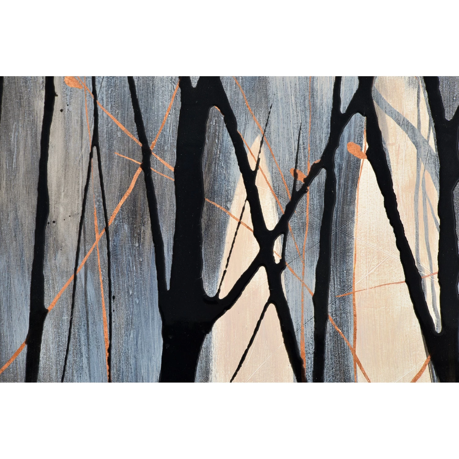 The Bloomfield Canvas Painting features a beautiful hand-painted design with gloss accents, bordered by a black floating frame.Â