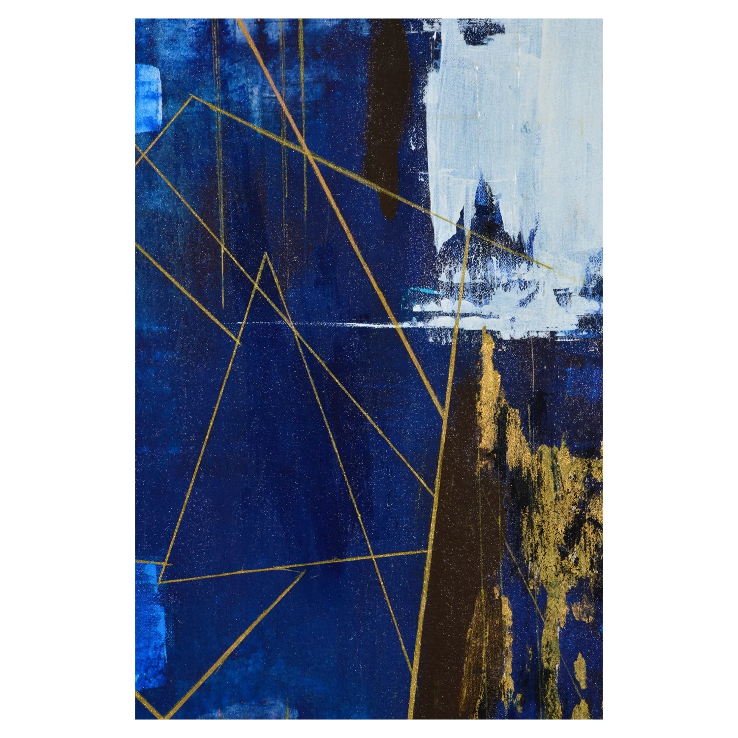 The Blue Dream Canvas Painting is an alluring piece of art, featuring gold leaf accents, complete with a golden frame.Â