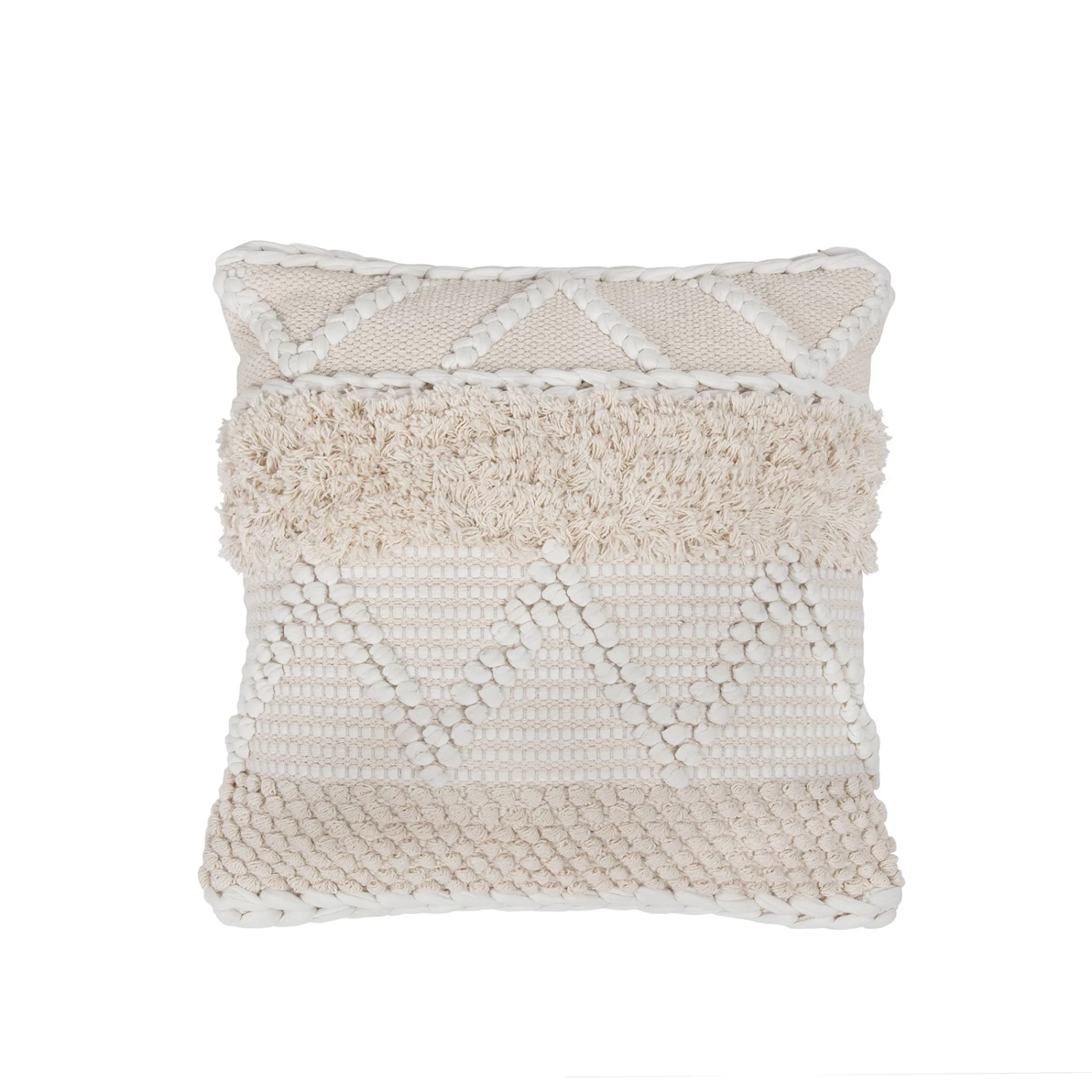 Macrame is back and we’re loving it. The chunky, textured finish of this 18” cream square pillow is just what every boho-styled sofa and chair needs.