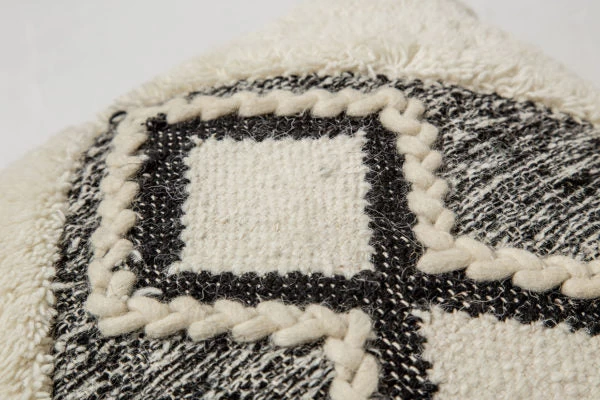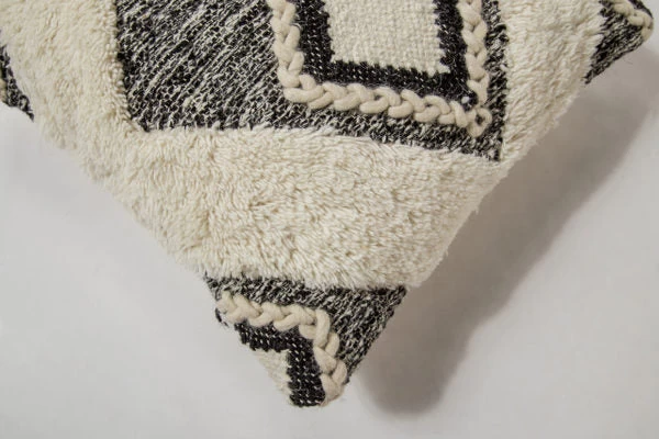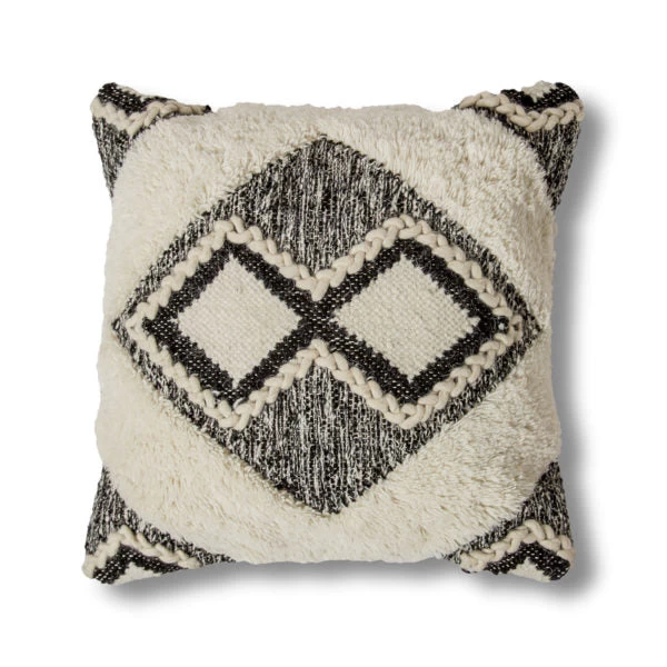 We love a good geometric pattern. Our Robin Bohemian macrame cushion is a boho basic for any room in the house. This soft wool and cotton hand-woven cushion features a bold diamond geo pattern in black and cream. Pop it on a bed, accent chair or sofa for added comfort and style.