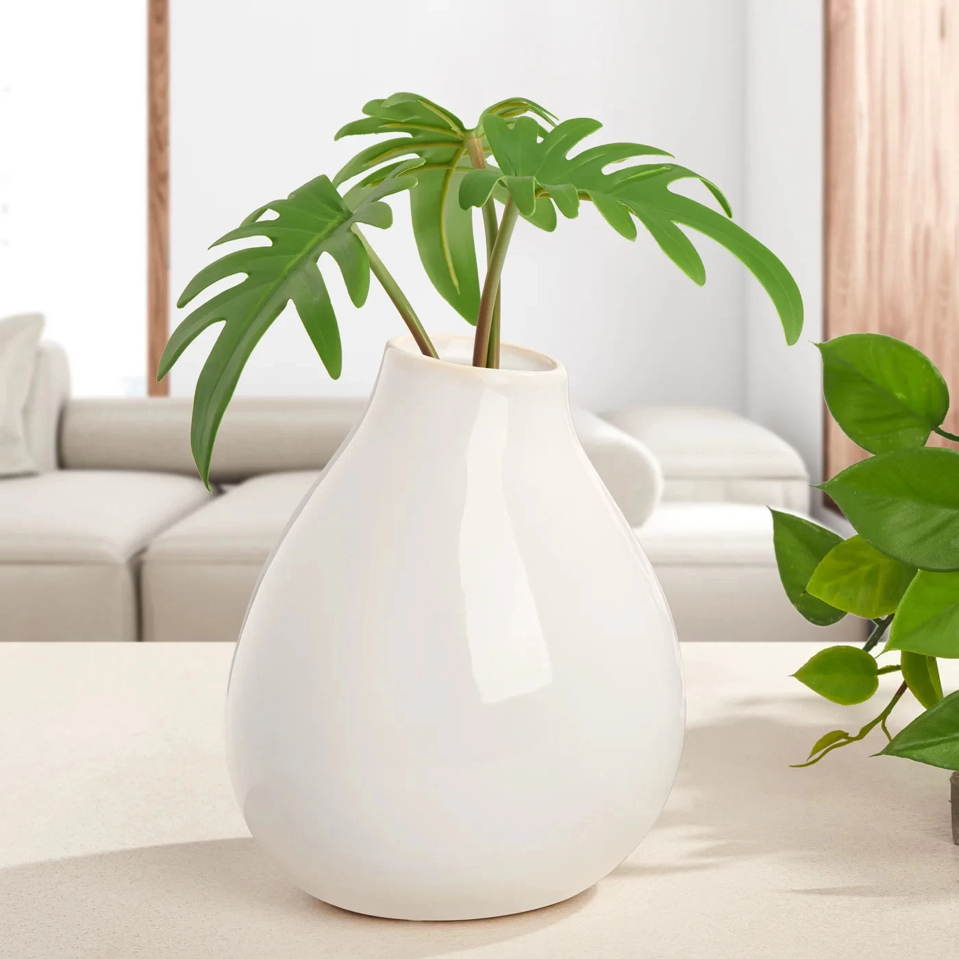 Bring an element of sophistication to any room with this Bowen 7.25h” White Reactive Glaze Ceramic Bulb Vase. The abstract bulb shape and reactive glaze evoke a subtle modern vibe in this tasteful decorative accent piece, perfect for displaying fresh or artificial florals. Elevate your decorative aesthetic with this perfect pairing of contemporary style and timeless charm.
