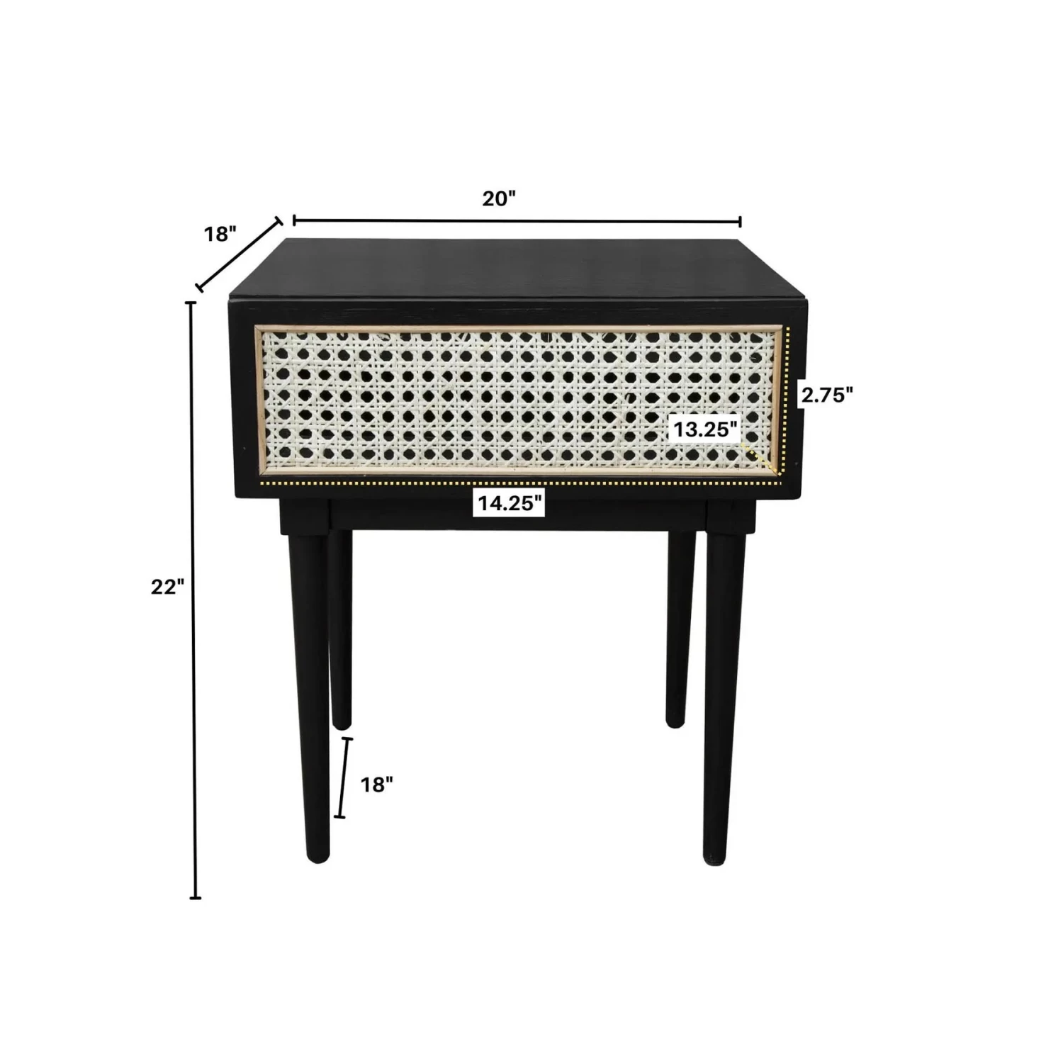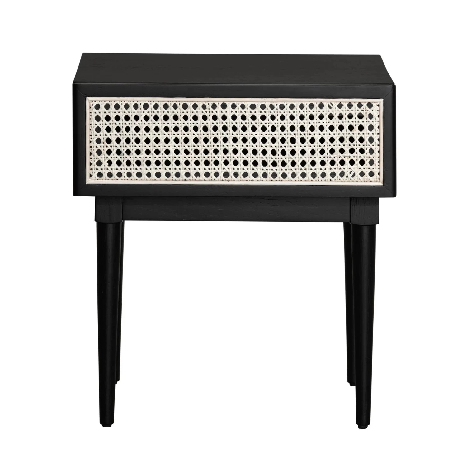 This Cane Side Table – Matte Black is the perfect combination of modern and traditional elements. The sleek matte black exterior and woven rattan are stylish and sophisticated, while the reclaimed oak and pine wood construction ensures longevity. Plus, its drawer opens smoothly on telescopic runners for easy storage. Give your living space an updated look and ample storage with this timeless piece.