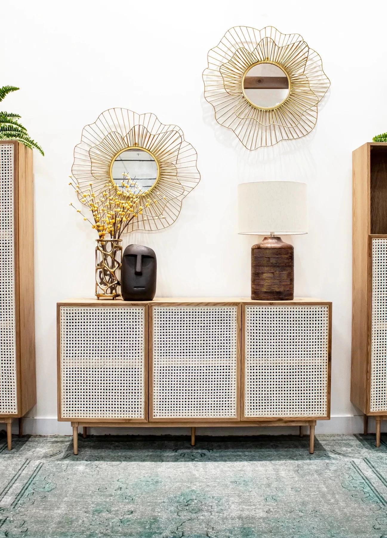 A simple yet stylish combination of matte black exteriors and woven rattan, gives this collection a chic contemporary style. Great for any living place as this piece provides plenty of storage space.