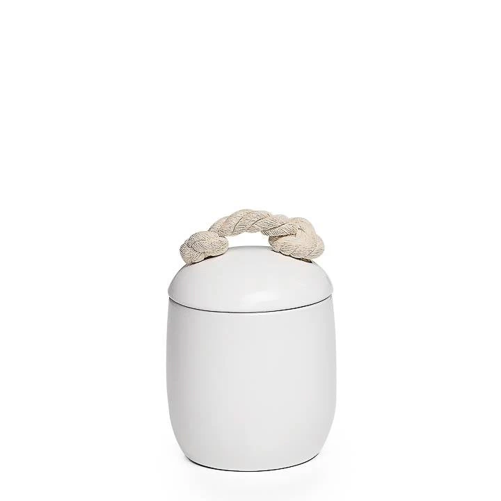 Perfect for the kitchen, bathroom or bedroom, these ceramic canisters are completed with a rope handle.