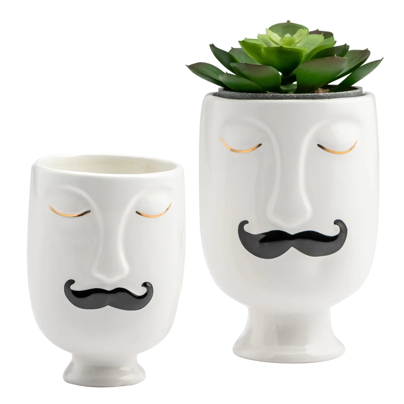Achieve a tasteful and unique look with the Chic Moustache Man 3dx4.5h” Ceramic Face Vase, perfect for creating a timeless display. Fill it with fresh florals or potted plants for an exclusive addition to your special event. Showcase multiple vases together or mix and match with the Chic Red Lips Lady Vase for a one-of-a-kind style.