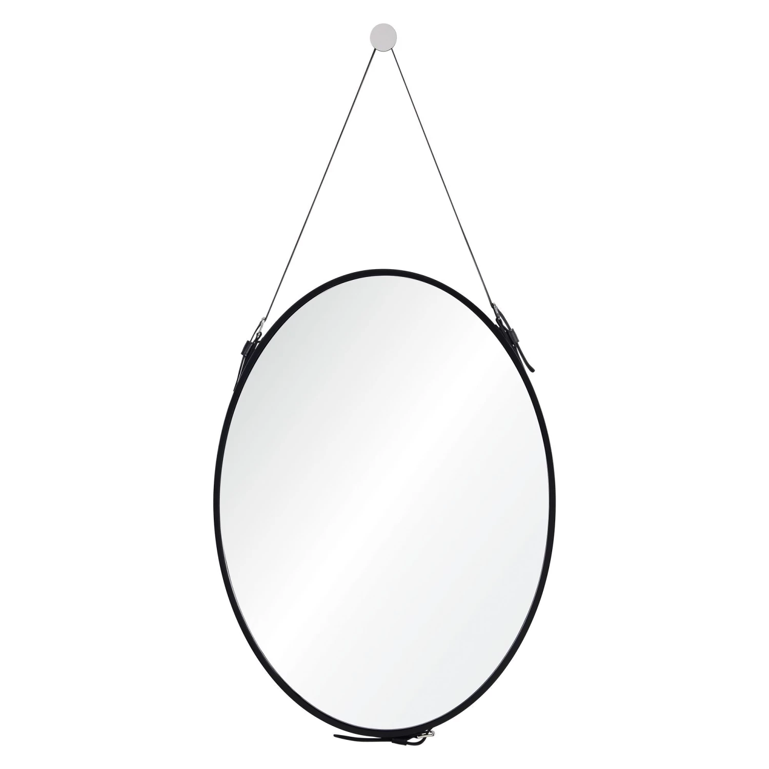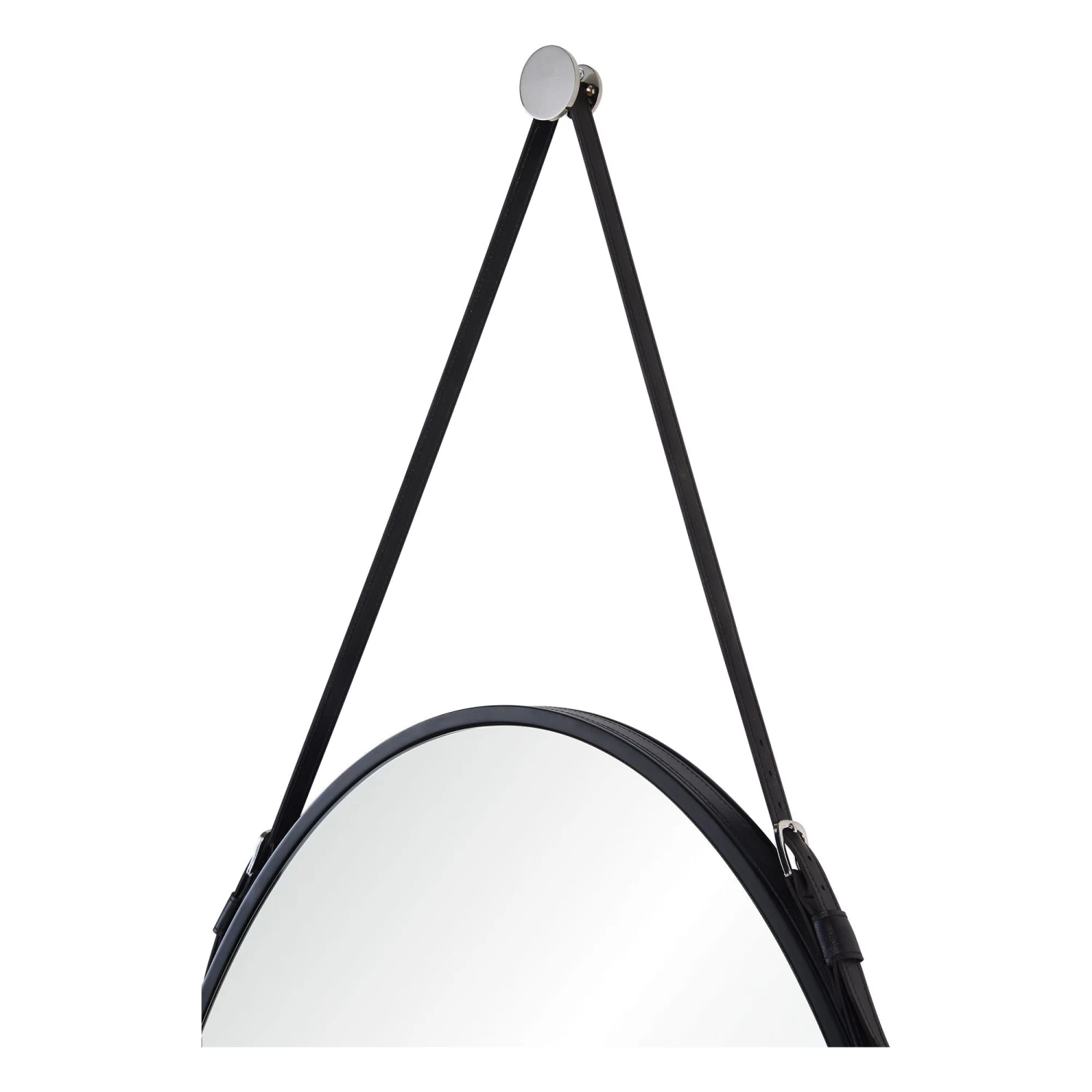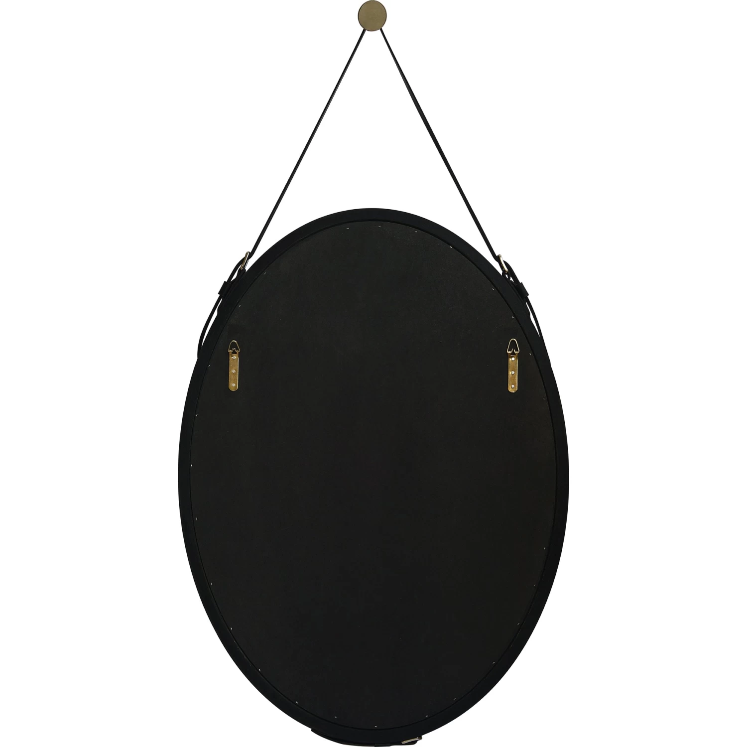 The Cordova Wall Mirror features a timeless design. This mirror includes a resin mirror frame with a decorative black leather strap and hook.Â
