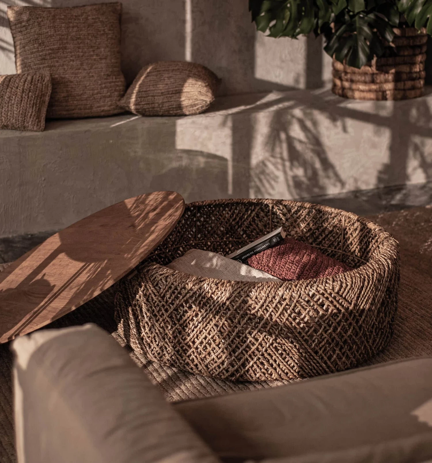 Conventional techniques combined with an uncomplicated and rustic fashion. This piece is made from natural and sustainably sourced materials. The base is handwoven from abaca fibers and the top is made of reclaimed teak. This table can be turned into a storage basket by removing the top. Multifunctional and eco-friendly, it brings high quality island-inspired style to your home.