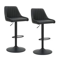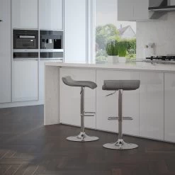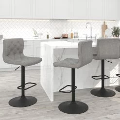 Kron Adjustable Height Air-Lift Swivel Stool – Set Of 2 – Grey Fabric
