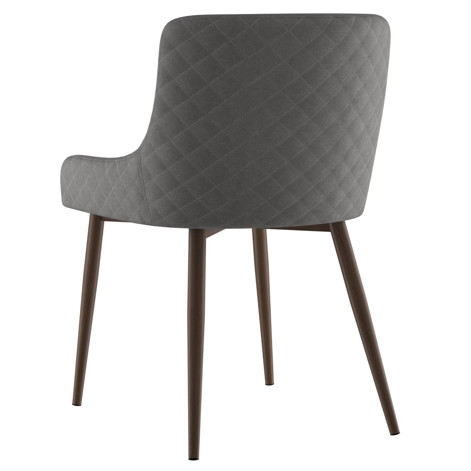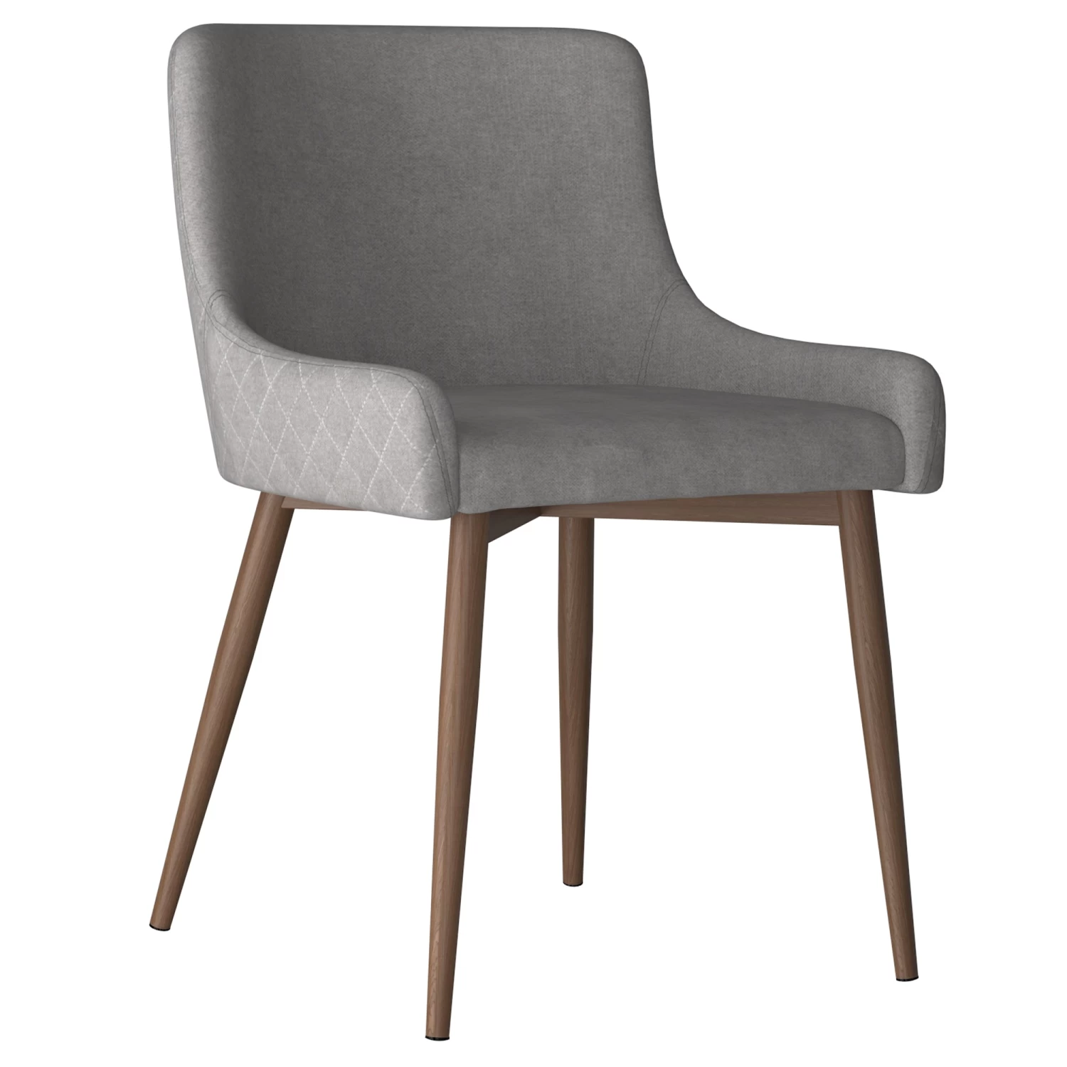 This contemporary dining table makes its presence known with appealing finishes, interesting stainless steel components, and a sleek geometric design. Fashioned out of both wood and metal, the compelling and contrasting composition of this piece makes a striking statement. Mid-century inspired dining chair. The contoured shape and plush, diamond-patterned tufting on the back provide comfort on one side and a dose of style on the other. Metal legs provide sturdy support.
