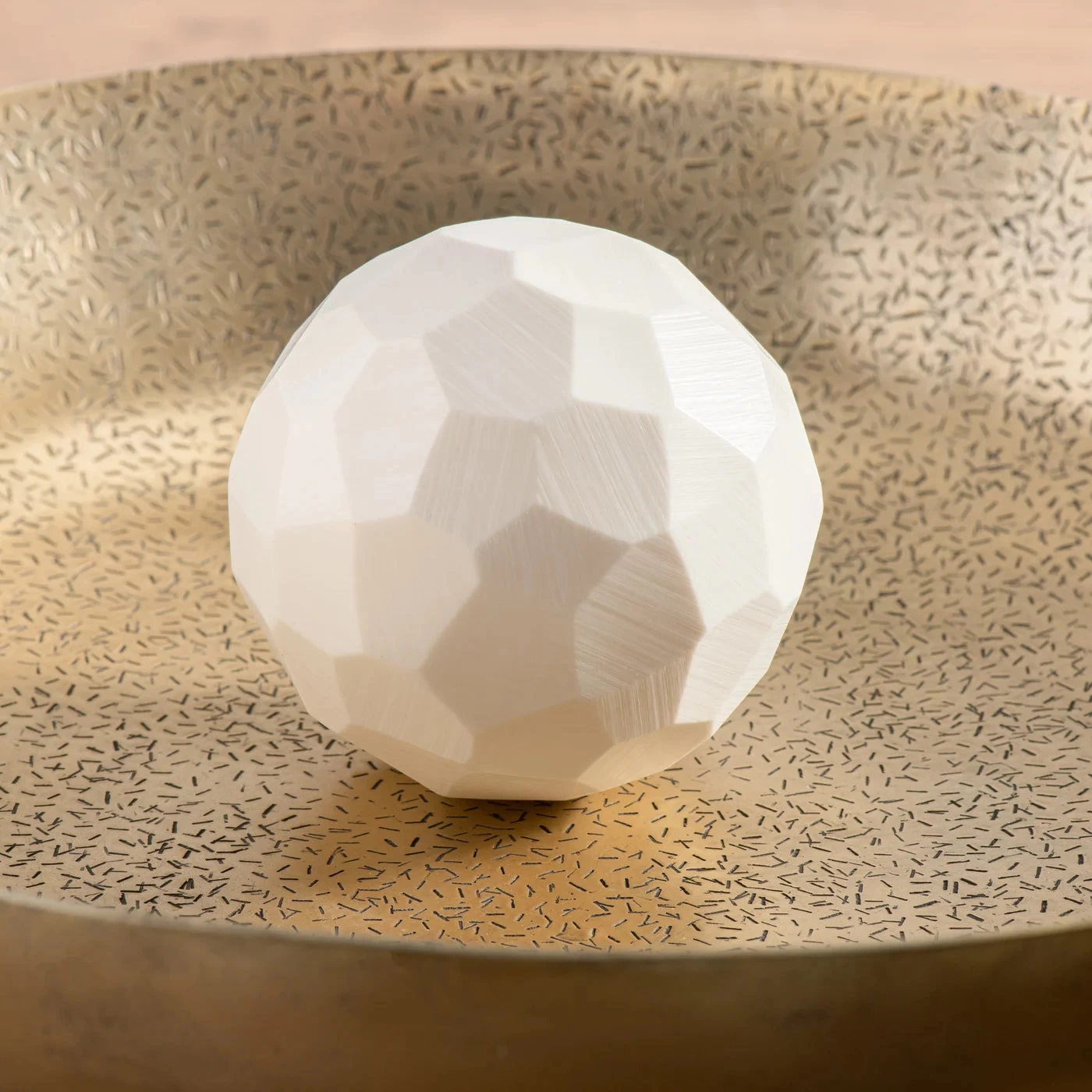 Whether used on it’s own, or placing multiple pieces together, this acrylic decorative ball has a simple elegance with a faceted design and finish.