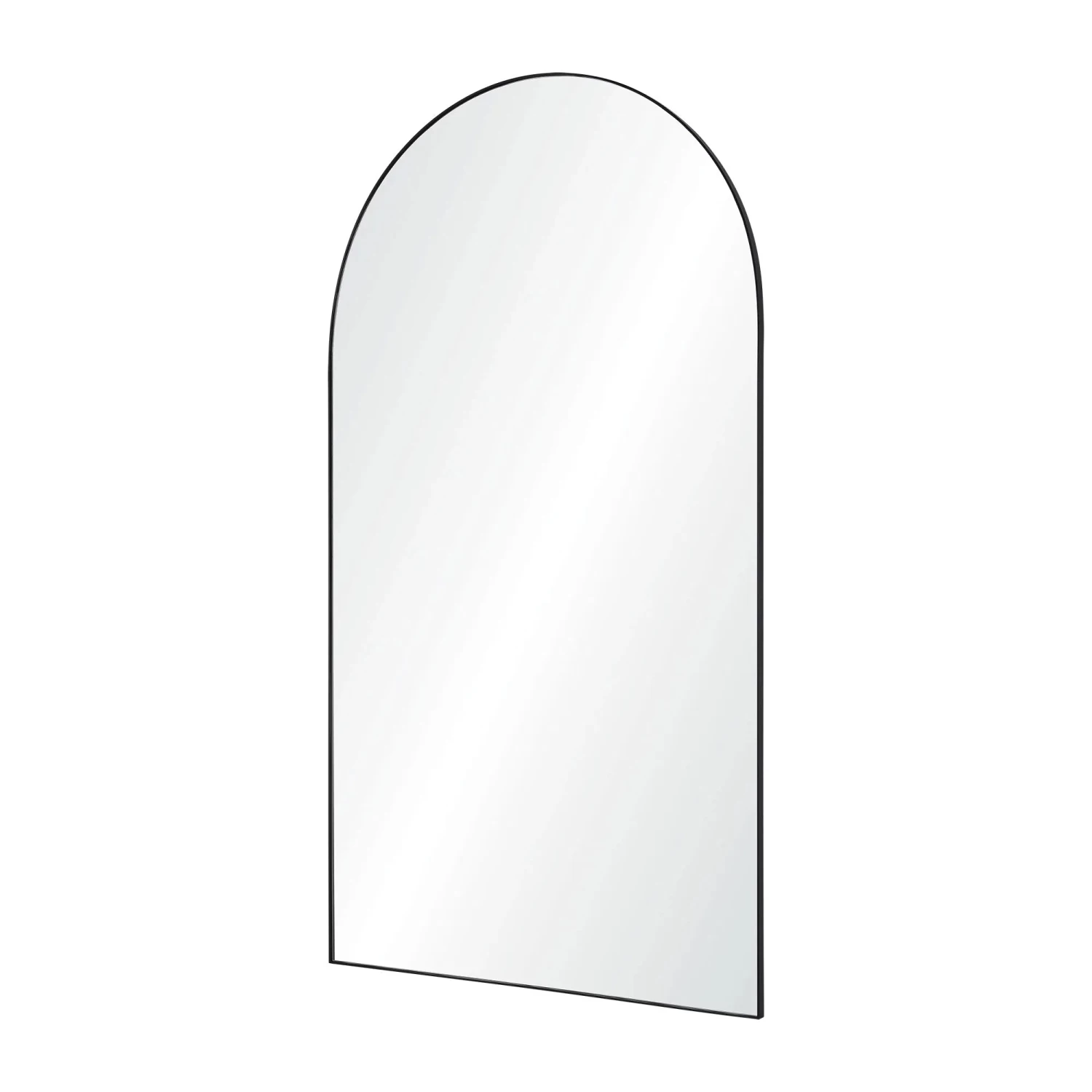 This full-length mirror is designed with subtle sophistication in mind, offering a versatile accent to a variety of spaces. Its matte black frame is framed against a light-colored wall for a subtle pop, while the arch structure adds soft, smooth touches to its modern design. Its imposing size commands attention and creates an awe-inspiring aura, making it the perfect piece for any entryway, bedroom or showroom.