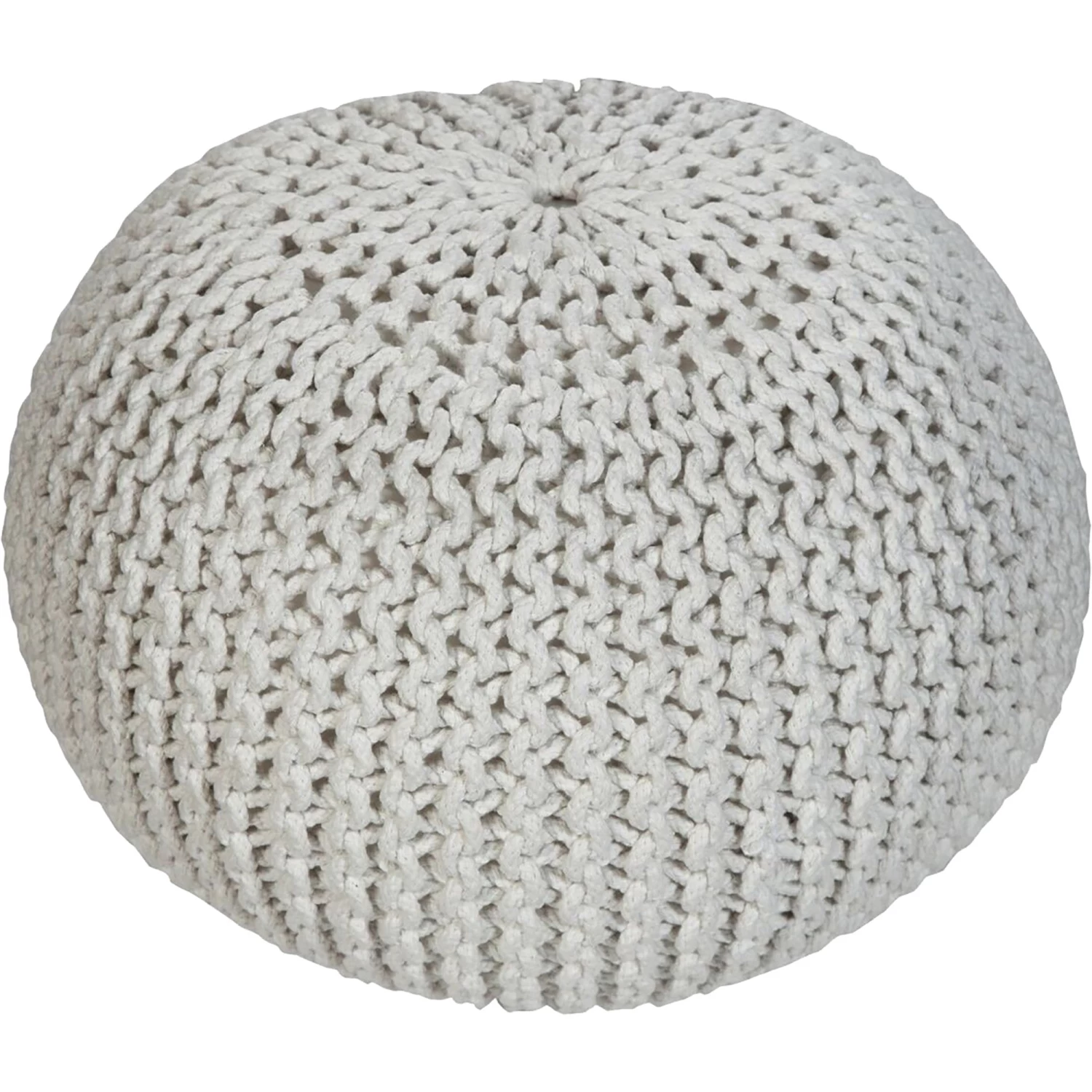 The Finley Pouf features a contemporary design, composed of white knitted cotton with bead filling.Â