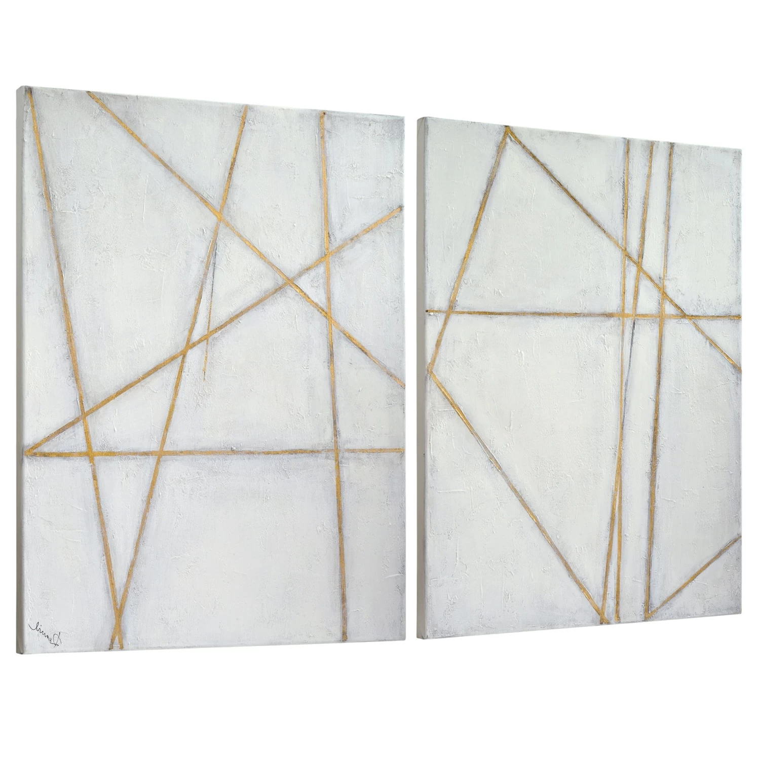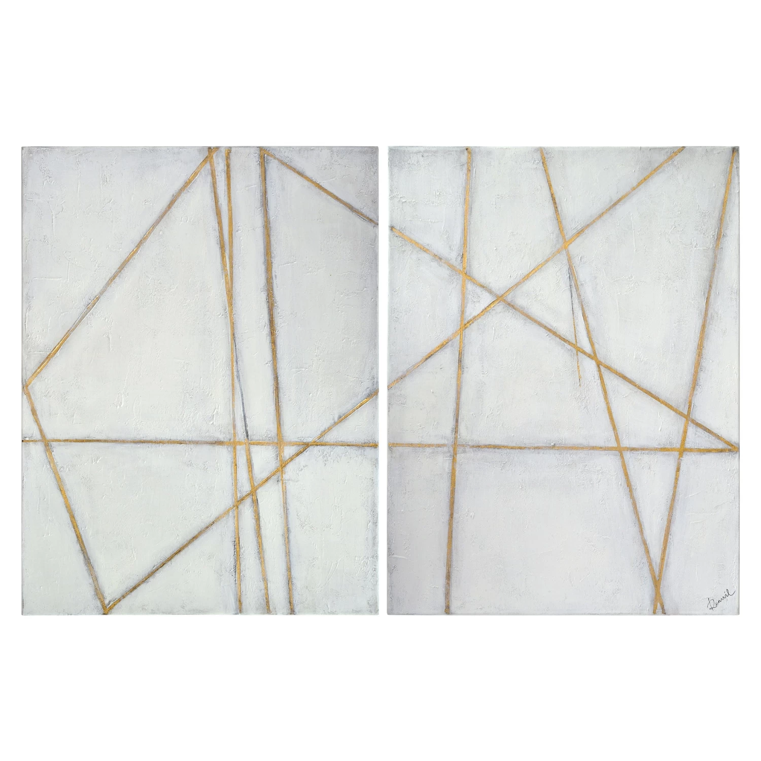 The Glacier Canvas Painting Set features a set of two designs hand painted on canvas, each with gold leaf accents.