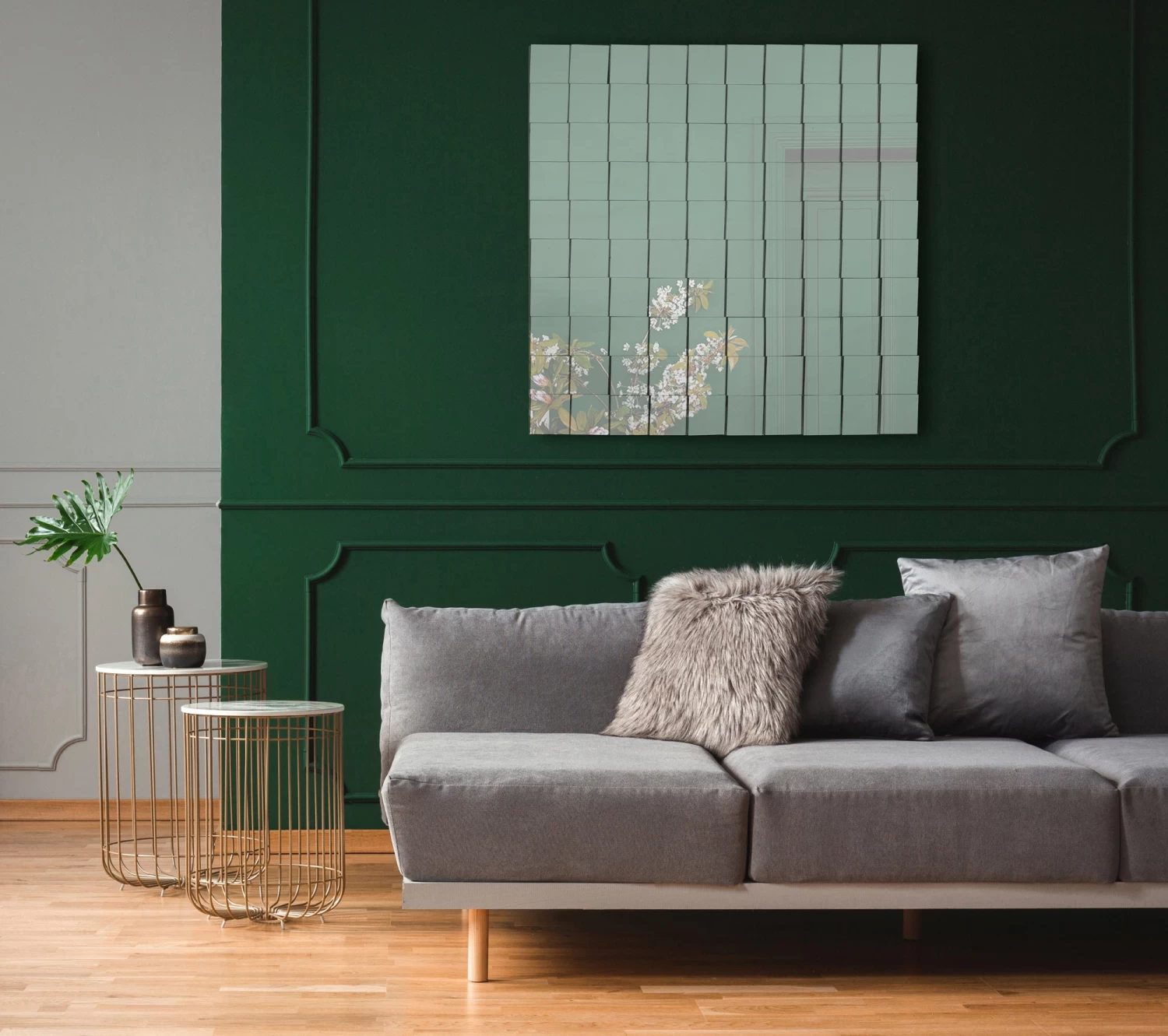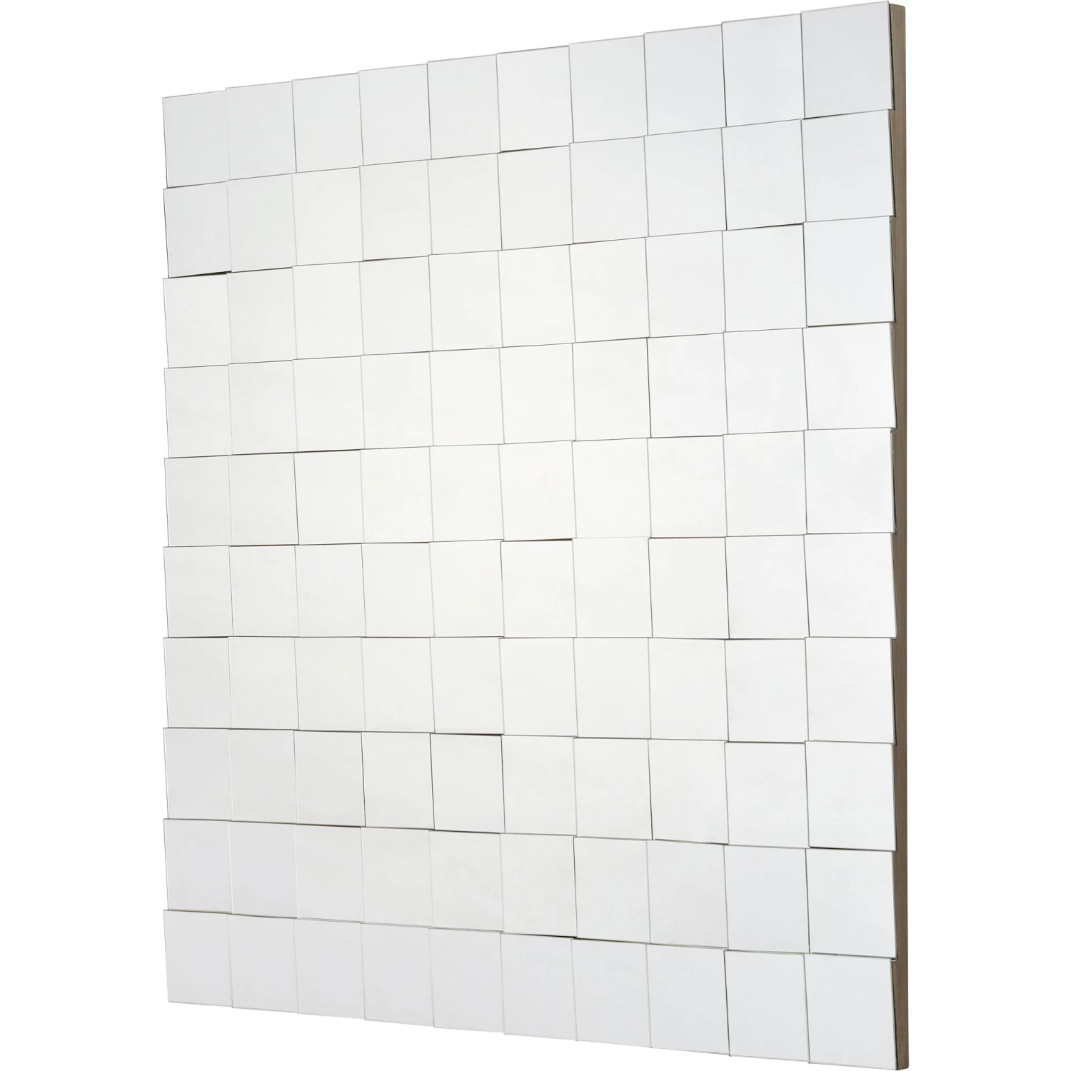 The Gomera Wall Mirror features a multifaceted surface with sleek polished edges, complete with an antique brushed silver finish.Â