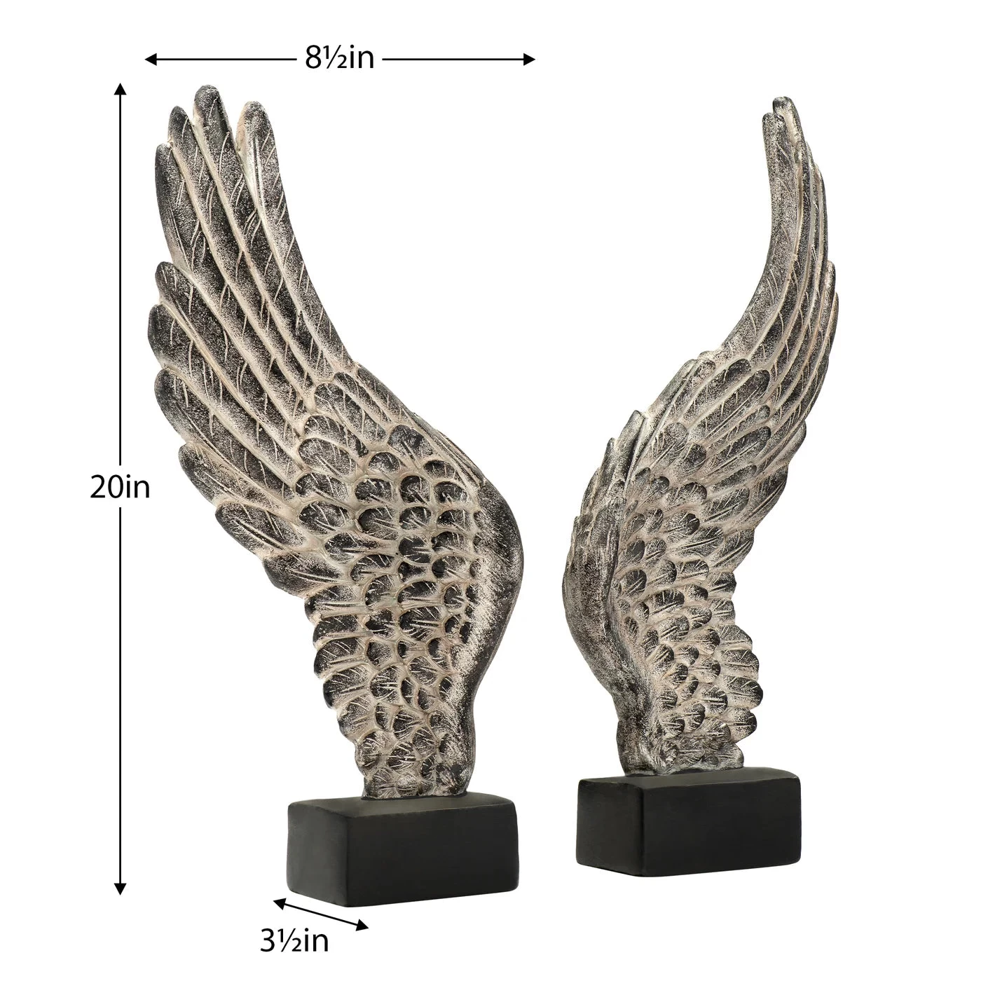 This set of wings, with its antique black finish, provides an angelic accent to any room. Prop them on a shelf or mantel for an elegant touch, and create a signature style statement.