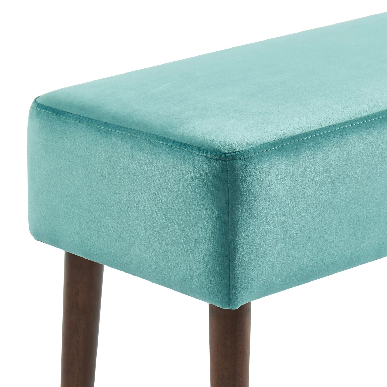 With a stylistic twist blending the old and classy with the sophisticated new, you will love this mid-century indoor bench. The simple, clean-lined design ensures this versatile bench will have an eye-catching impression on your contemporary space, just the perfect upgrade! The velvet upholstery sits pretty atop solid rubberwood legs that are stable yet still capture the mid-century style with a stunning walnut finish. The seat is filled with medium firm polyester for comfortable sitting in your waiting area, dining room or hallway.