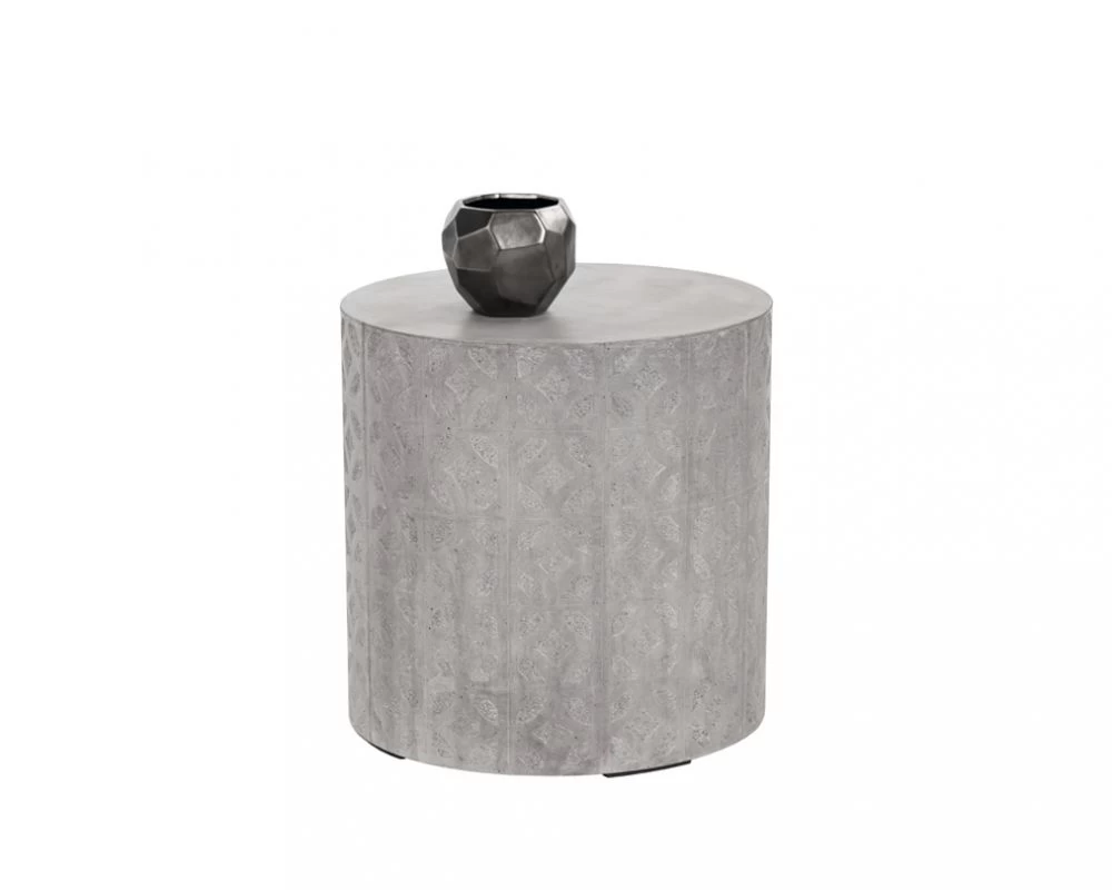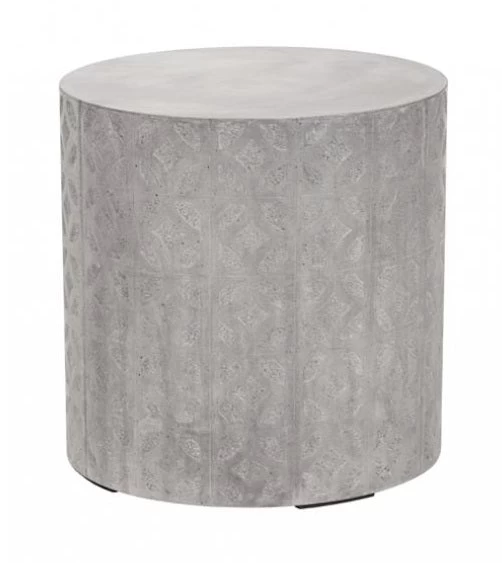 This cylindrical concrete side table is simple yet bold. The intricate pattern on the side creates visual interest, texture and depth to the otherwise smooth surface. Crafted from a natural concrete mix, each piece will look different, with variations of grey hues that will enhance over time. Suitable for indoor and covered outdoor spaces.