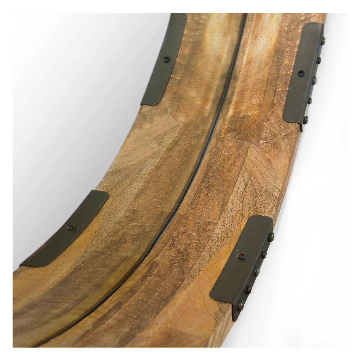 The Industria Wall Mirror features a rustic style, composed of mango wood with a natural wood finish.Â