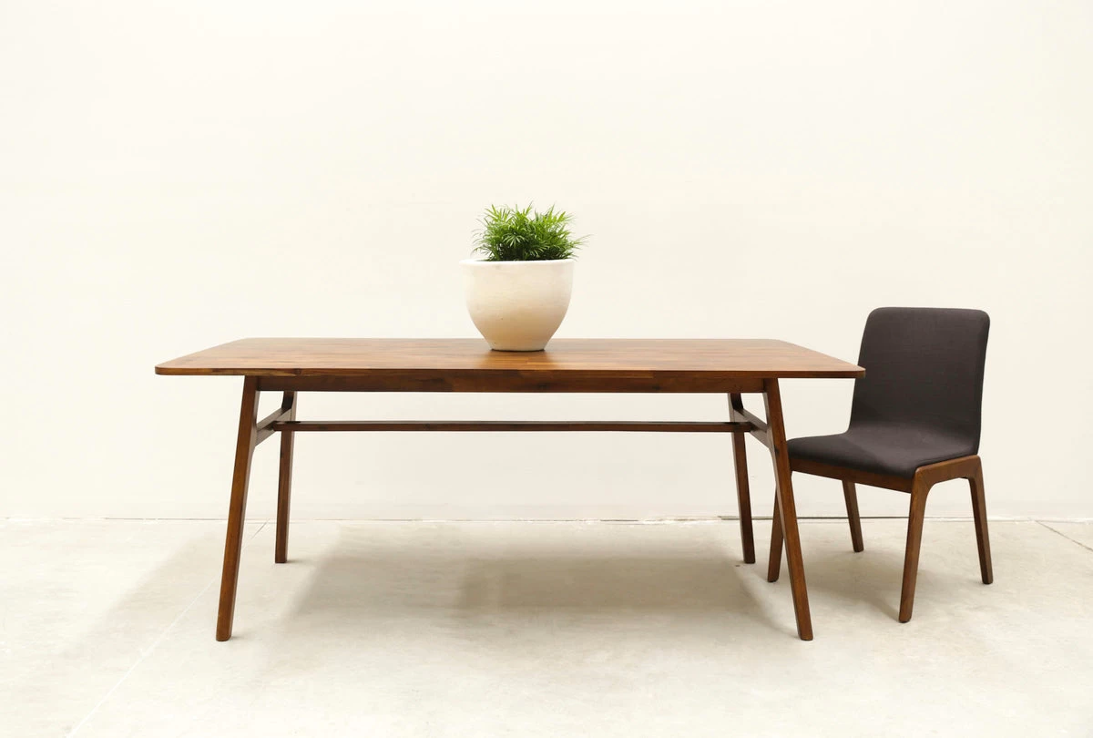 The Jeremy Dining Table is a beautifully crafted table that would look excellent in your dining room. This table combines classic wooden construction, with a cool modern look you will love. It’s made from acacia wood, with an Estelle brown wood finish. The perfect table for every day meals, or hosting dinner parties with your family and friends.