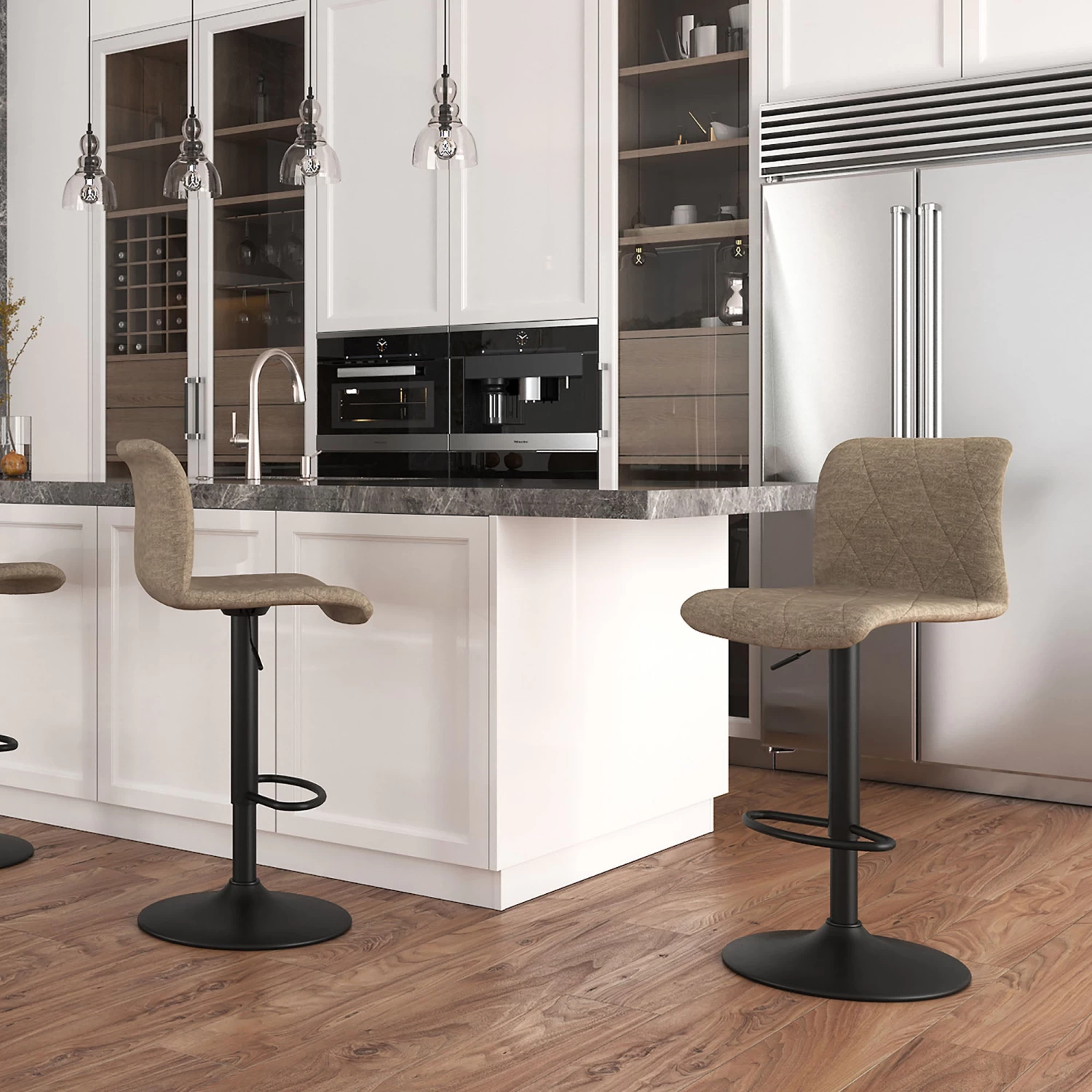 An easy addition to your kitchen breakfast bar, this adjustable height bar stool will help complete your look. The fabric upholstery sits nicely atop the black metal post. Air-lift height adjustment lets you get comfortable quickly and the foam cushioning ensure you can stay comfy throughout your meal. Black metal footrest is the perfect finishing touch.