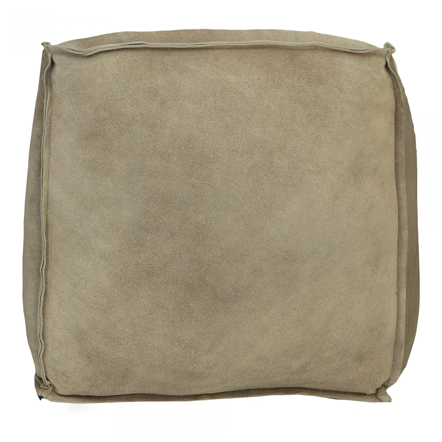 The Jules Suede Pouf ottoman has a thick leather cover and inside-out seams. With recycled cotton stuffing, it also has en eco-friendly edge. Perfect for adding texture to a room, and always handy for occasional seating.
