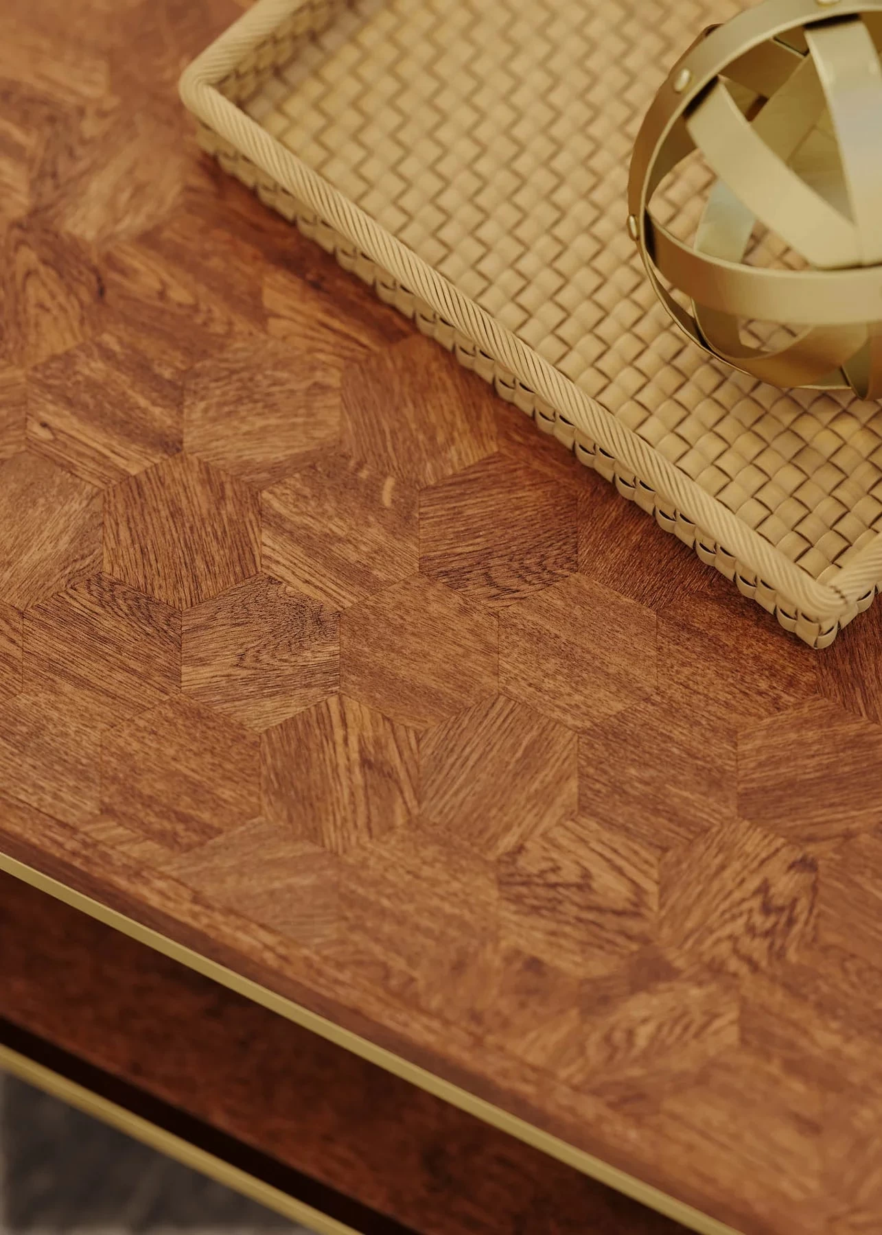 | Other Details | Top: Hexagon parquet design Frame: Metal with antique brass finish |