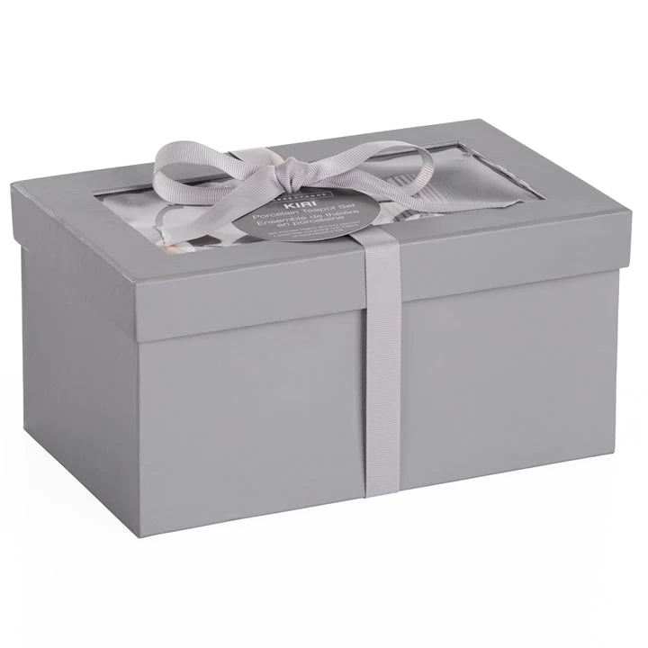 Kiri 3 Piece Porcelain Teapot Set – Grey With Blue Trim