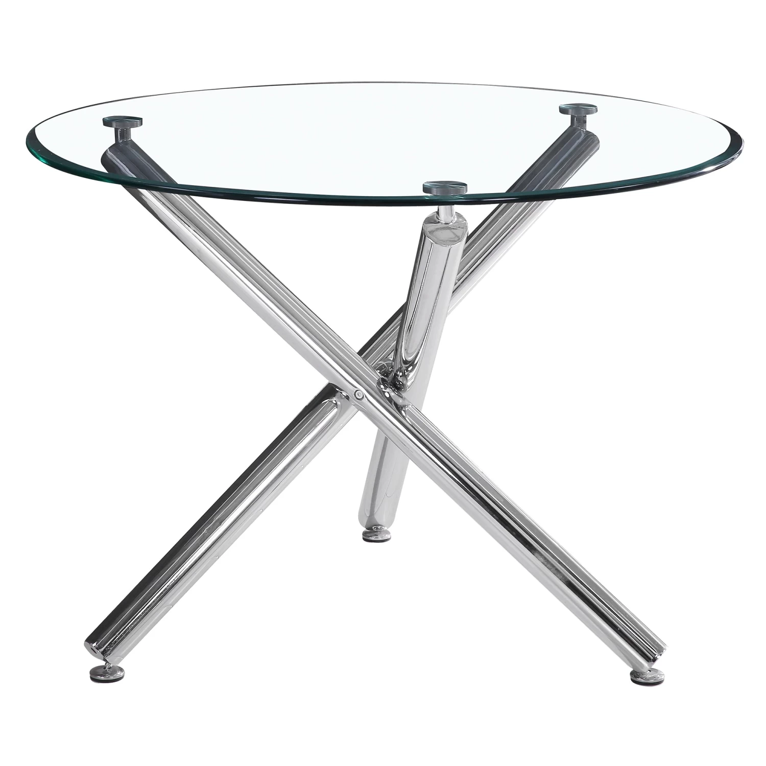 Contemporary beauty that is ideal for small spaces. The clear glass top and airy design create the impression of space. Chromed metal legs provide sturdy support. Great for casual dining. The sloped back of this mid-century modern style chair adds a level of sophistication and a dash of excitement to any room. Upholstered in a luxurious velvet, the chrome-finished legs of this piece further enhance its overall allure while the sturdy frame ensures comfortable seating for guests.