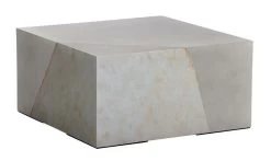 An industrial style coffee table with a contemporary flair. Stocked in natural grey concrete with a painted silver foil tear pattern. Crafted from a natural concrete mix, each piece will look different, with variations of hues that will enhance over time. Can be paired with coordinating end table. Suitable for indoor and covered outdoor spaces.