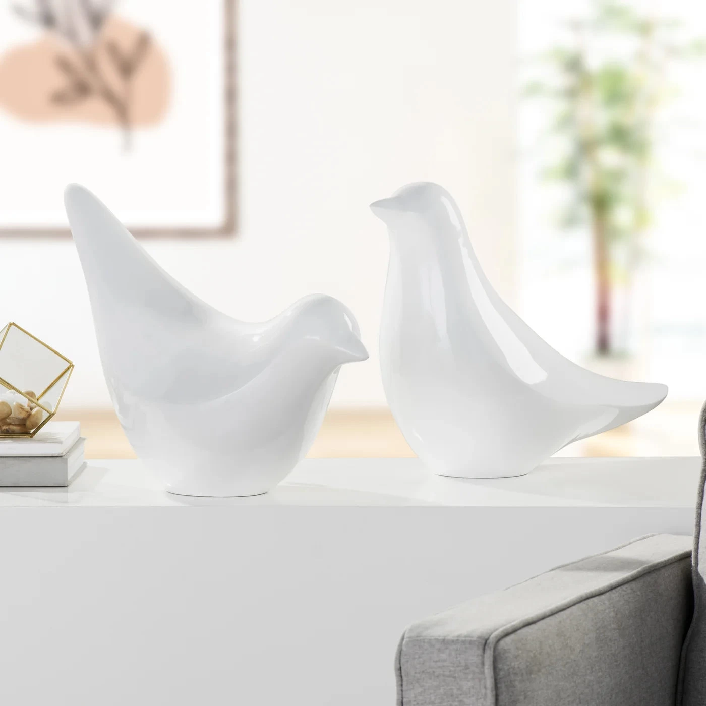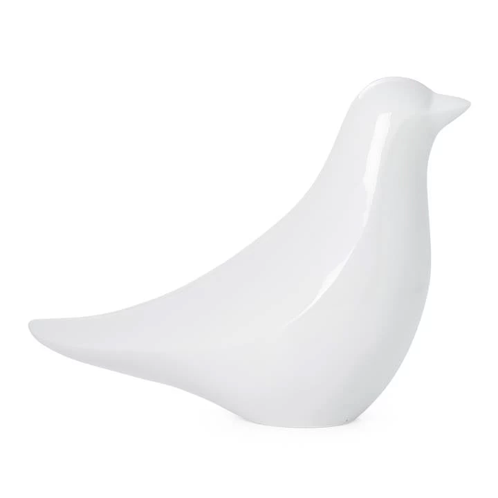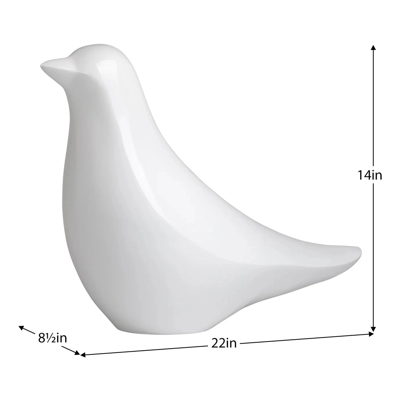 An oversized polystone bird is finished with a shiny white lacquer making it a great statement piece inside or out.