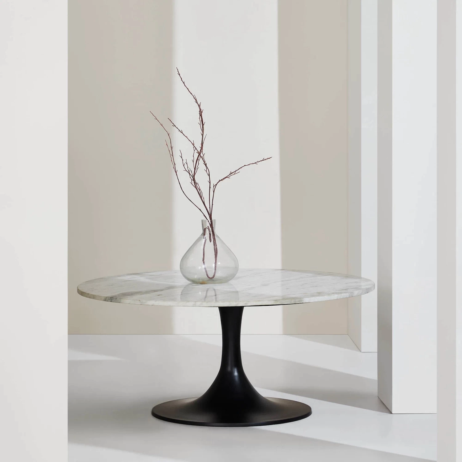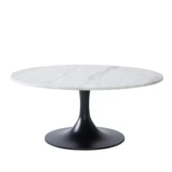 Bring an elegant touch to your living room with the Loveada Marble Coffee Table. Crafted with a classic yet modern blend of cast aluminum and marble in a powder-coated matte black finish with a natural white hue, it is an exclusive, sophisticated addition to any home. Its natural marble pattern will vary, creating a timelessly chic look. Elevate your interior design with this designer-quality table.