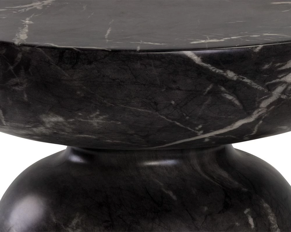 This alluring concrete end table will add depth and excitement to any space. The painted black marble-look finish makes it ideal for contemporary indoor and outdoor placements. Suitable for indoor and covered outdoor spaces.