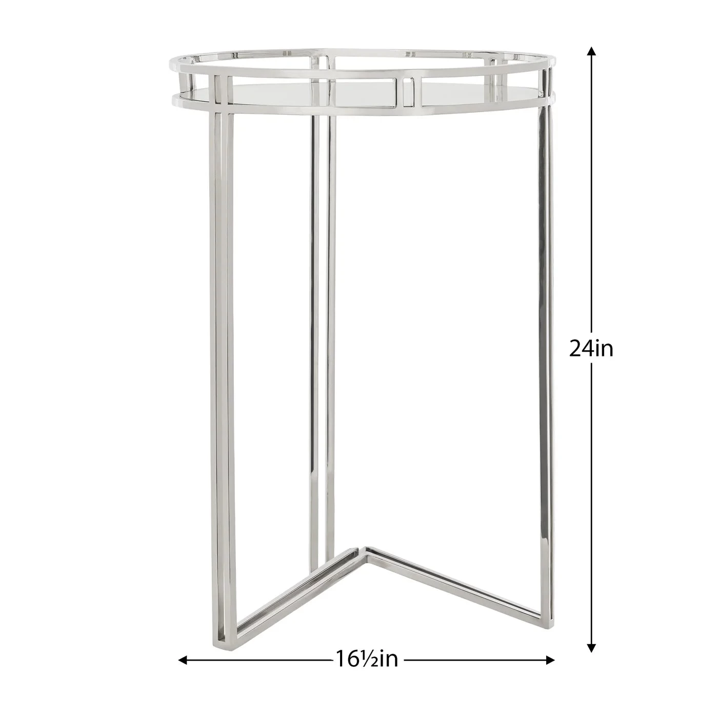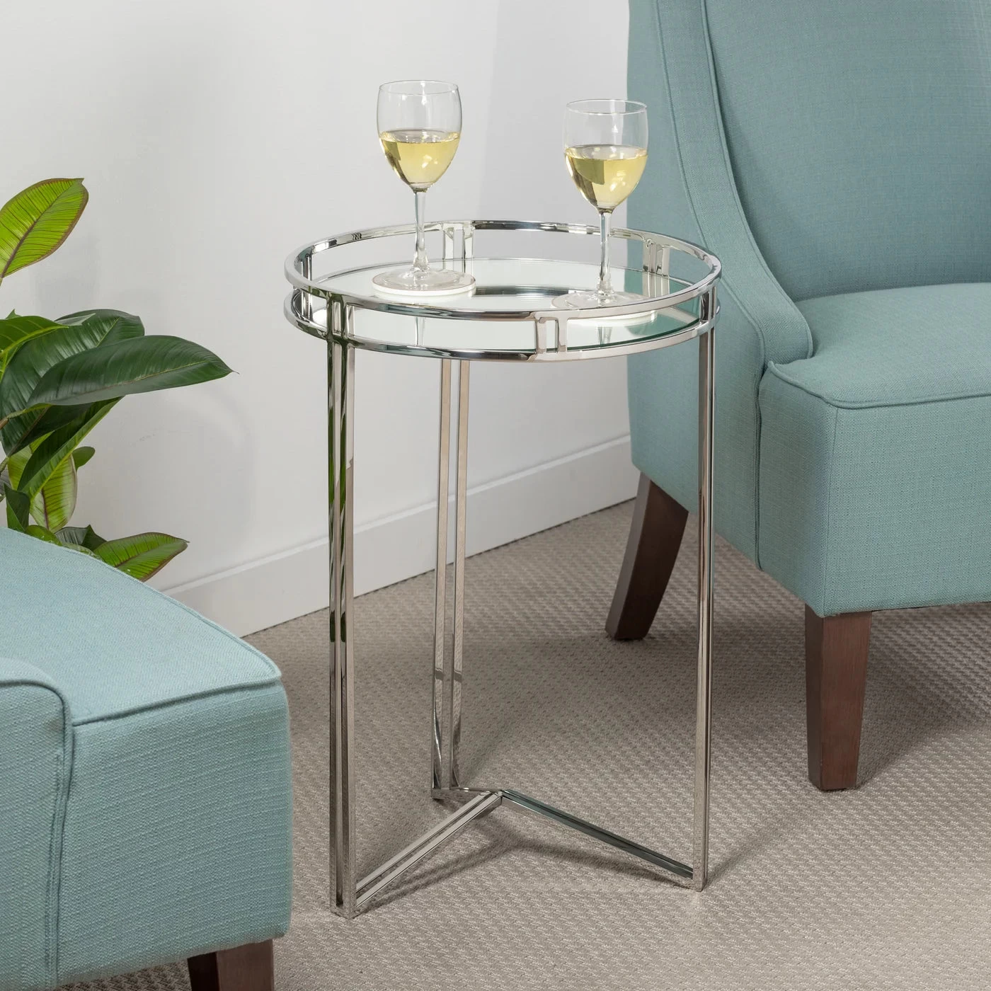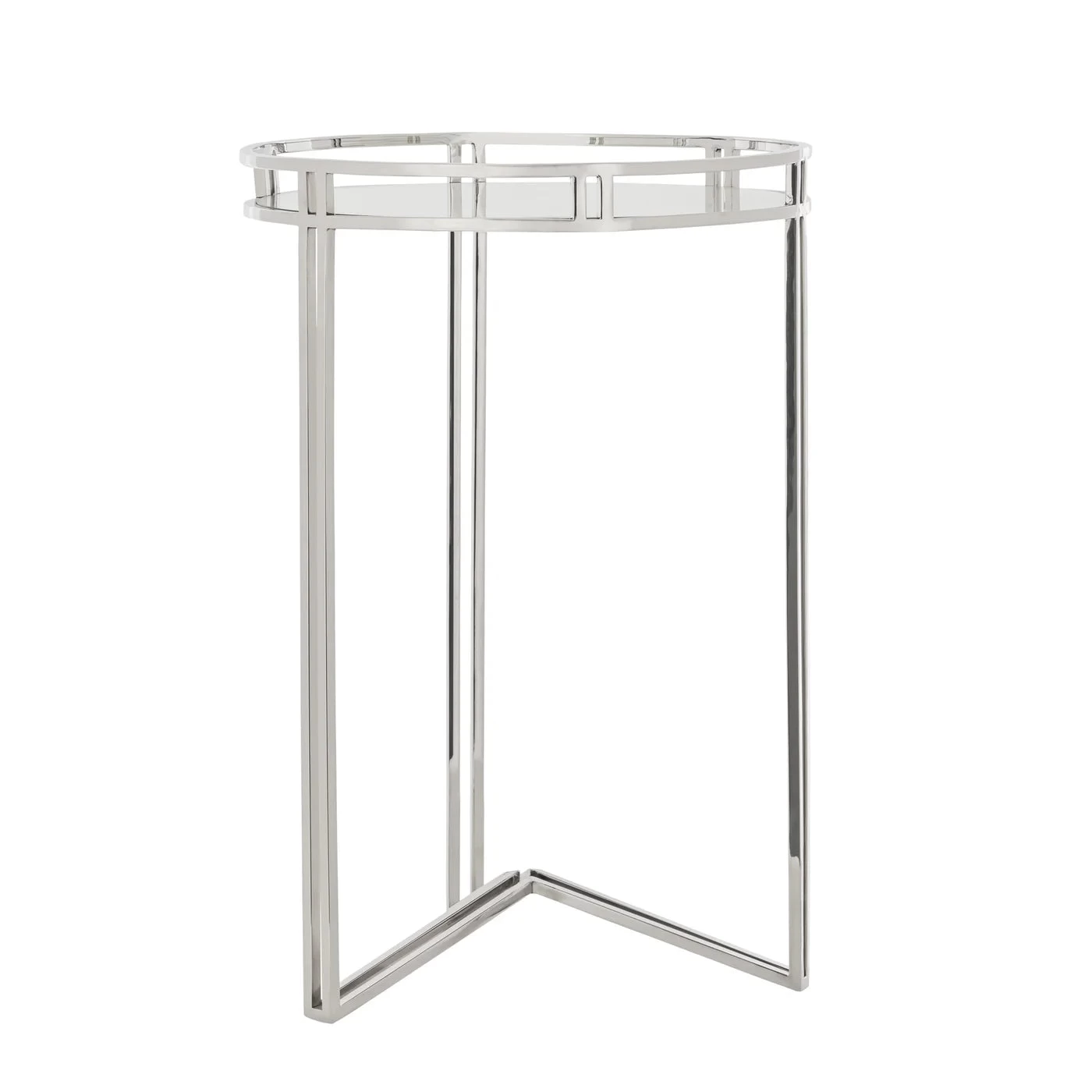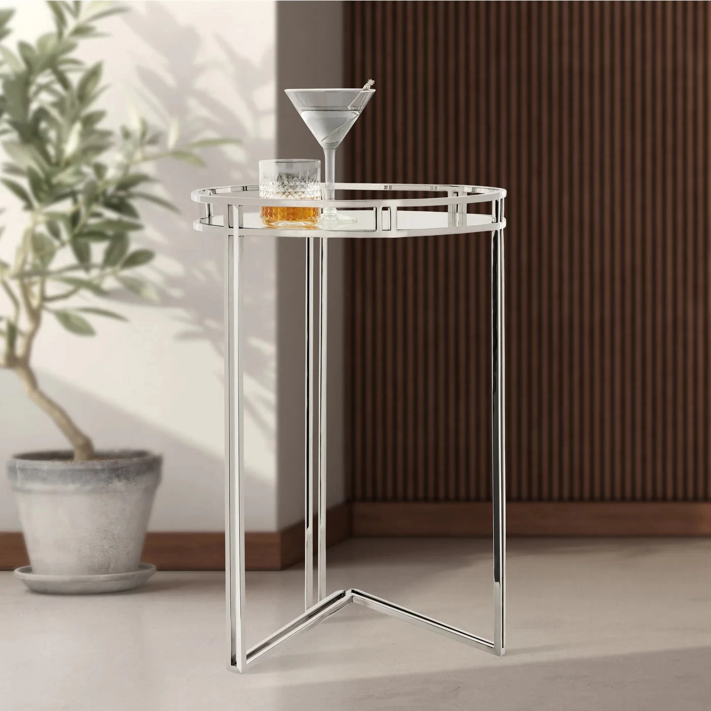 This stainless steel table is an eye-catching piece with a mirror top for a lux look.