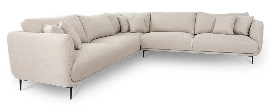 Built with luxury comfort in mind, our limited-edition Lyric Sectional features generously cushioned arms, back and seats. Upholstered in a gorgeous neutrals and-coloured polyester fabric, this sectional was made for relaxing in style. The unique, modern chrome legs add contemporary, elegant design. With plenty of seating, Lyric fits snuggly into your living or entertainment rooms. All that’s left to do is sit back in the plump cushions and chill. Comes with 6 toss cushions for added comfort or pillow fights.