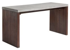 The industrial concrete top on this desk is uniquely complemented by a rich and organic looking acacia wood base. This piece is sure to add dimension and style to any contemporary office space. Crafted from a natural concrete mix, each piece will look different, with variations of grey hues that will enhance over time.