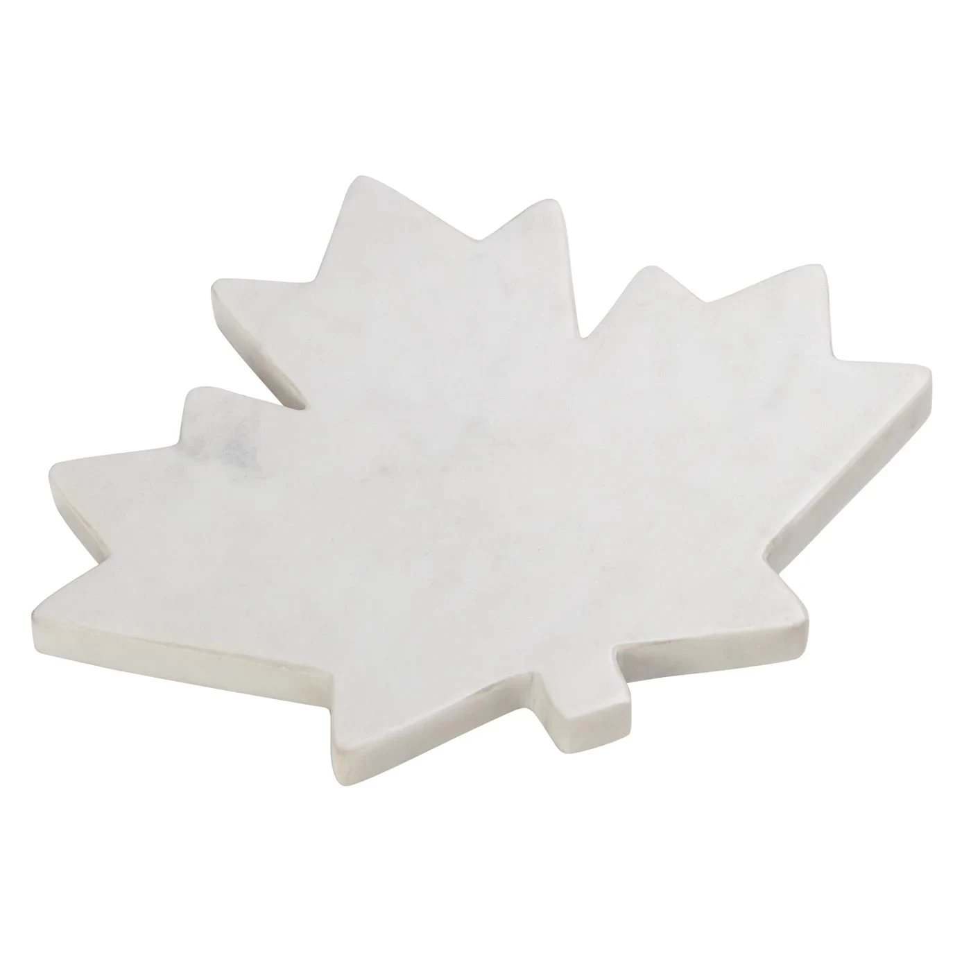 Create an inspired cheese or charcuterie display with this maple leaf shaped marble serving board. The size makes it perfect for intimate settings and includes foam pads to protect the surface below. Also doubles as a trivet for hot dishes!