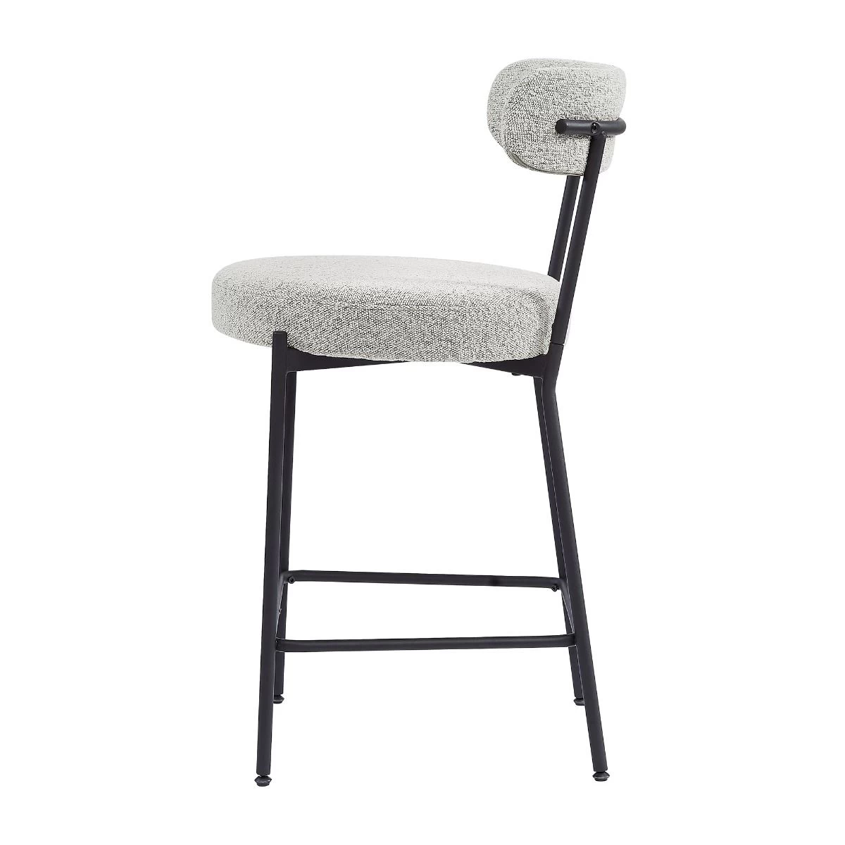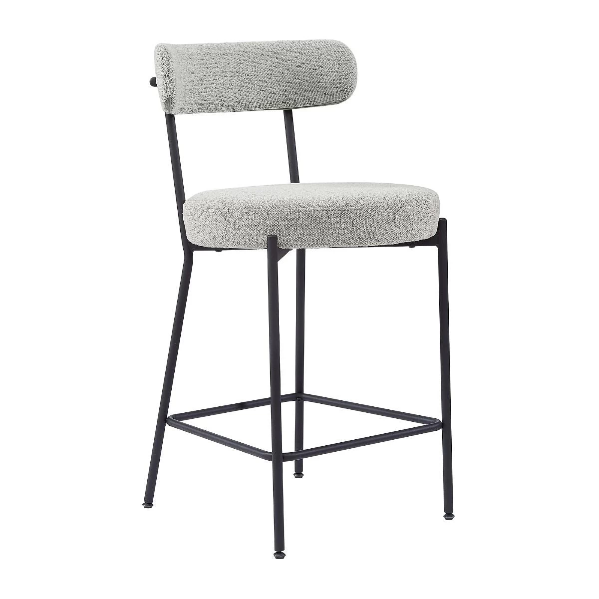 This modern and chic Molly Counter Stool is designed with a black powder coated metal base and a comfortable upholstery foam seat covered in soft polyester boucle fabric for an elegant look and feel. The metal base provides a reliable support system while the foam and fabric create a cozy seating surface.