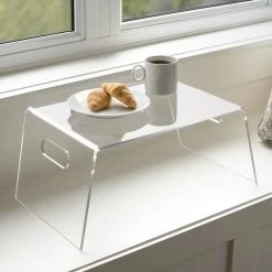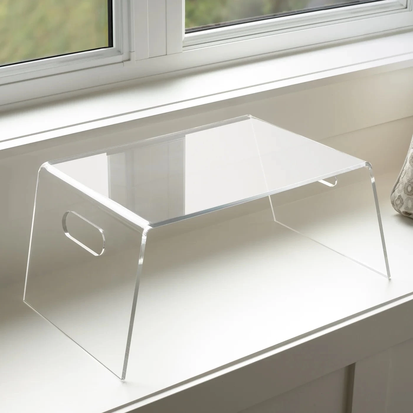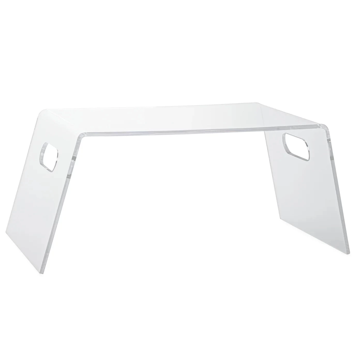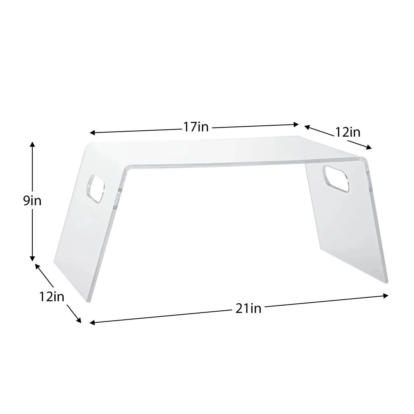 Enjoy your breakfast in bed in style with this durable clear acrylic tray. The clean styling fits in perfectly in any contemporary space. While this tray makes a practical serving piece, it can also pull double duty as a functional workspace on a sofa or coffee table. Acrylic provides the same modern, clean look as glass without the hazard of shattering and is perfect for everyday use.