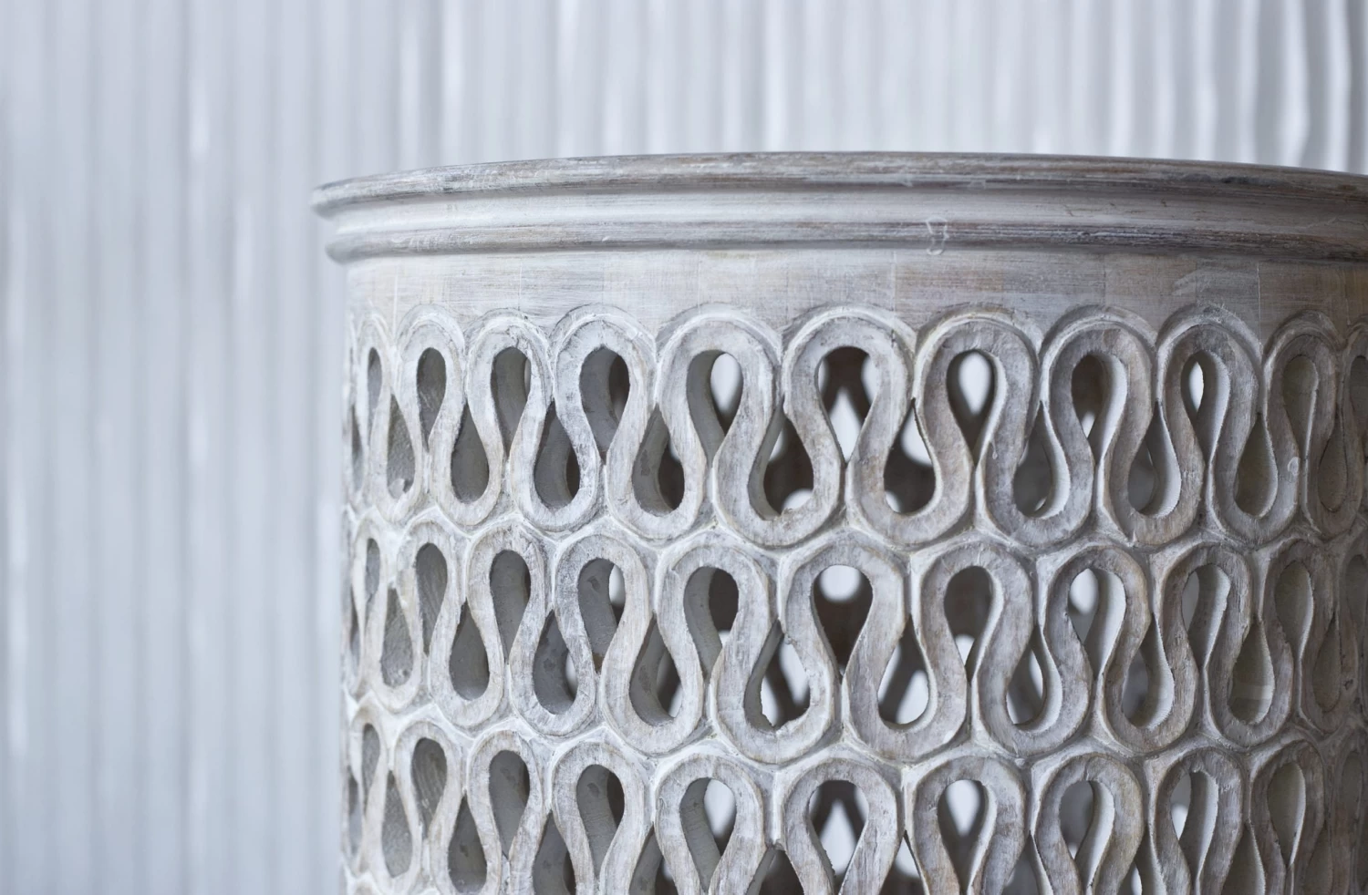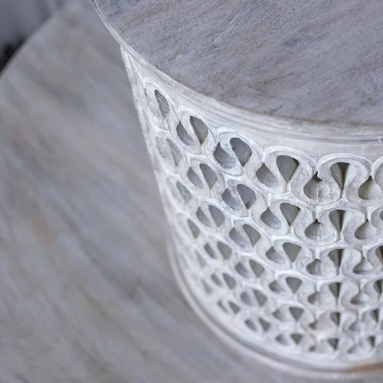 Your customers can have a piece of handcrafted beauty in their homes. Intricately hand carved from solid mango wood with a whitewash finish, our Noor Accent Table is a unique, French-inspired masterpiece.
